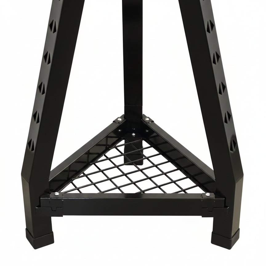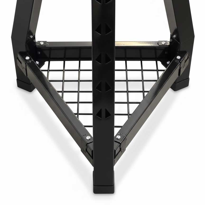 • Robusto telaio a tre gambe fisse in acciaio strutturale al carbonio verniciato a polveri nella colorazione nera per una stabilità superiore.