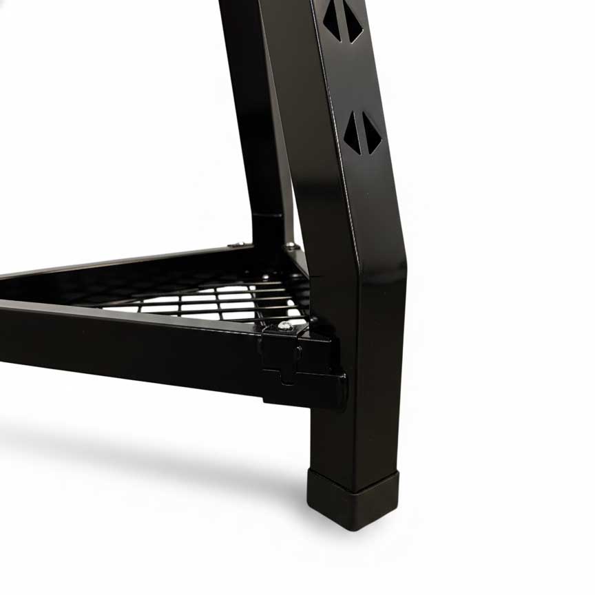 • Generoso ripiano inferiore in rete metallica ideale per riporre utensili, accessori o minuteria.