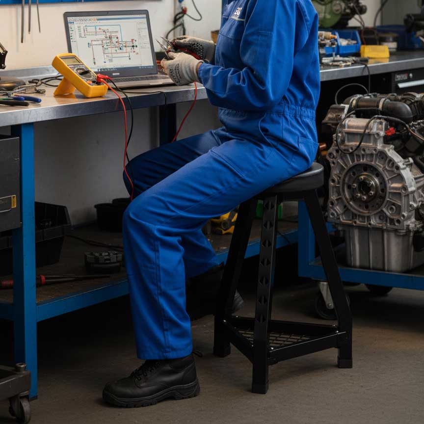 Il SOGI X4-18 è uno sgabello industriale alto a tre gambe, progettato per garantire stabilità e resistenza anche nelle condizioni di lavoro più impegnative. Ideale per officine meccaniche e automotive, garage, laboratori tecnici, reparti produttivi, carrozzerie, banchi da lavoro professionali e postazioni di assemblaggio, offre una combinazione perfetta tra robustezza strutturale e comfort operativo.