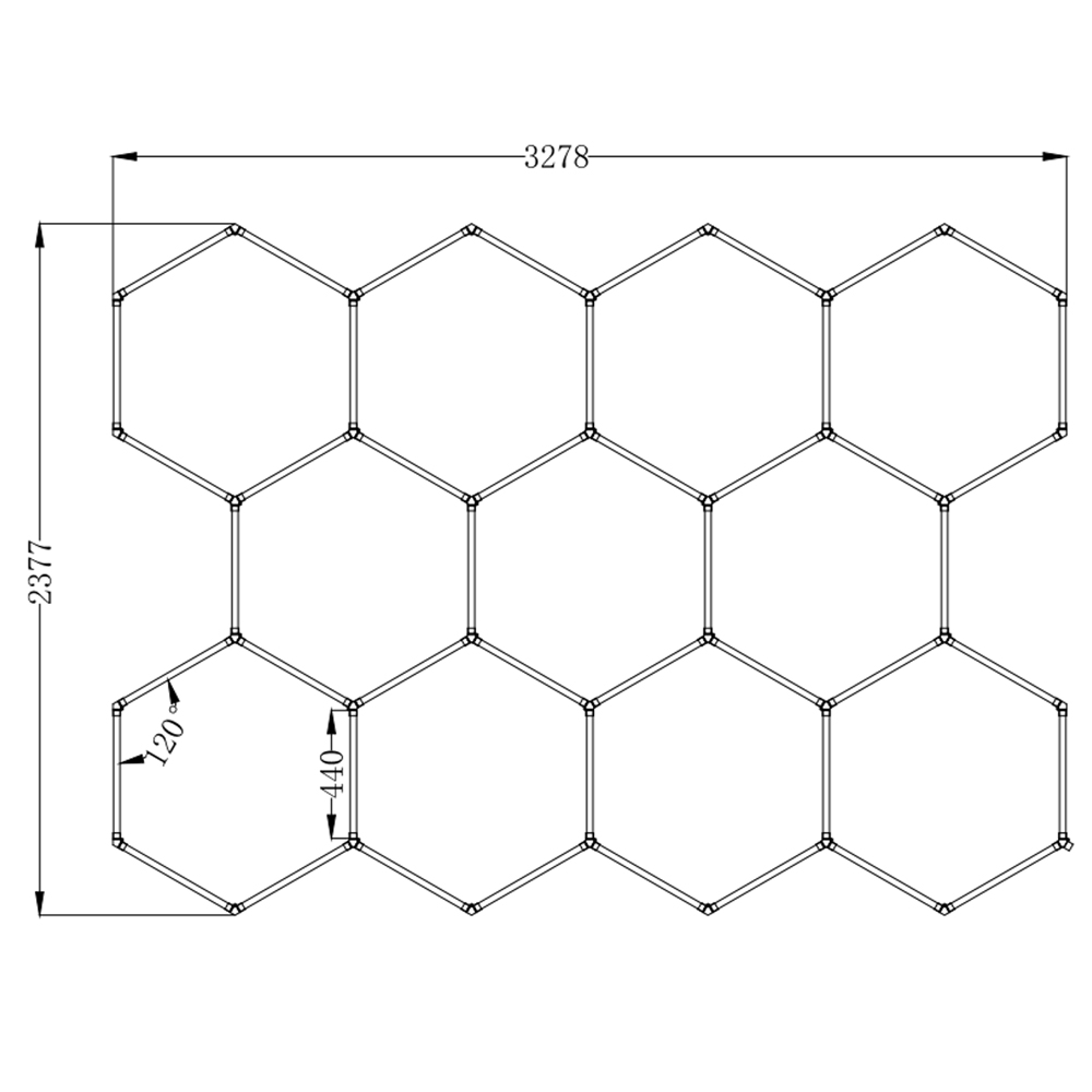 Luci LED nido d'ape per officina SOGI LAM-ES05 - 11 esagoni - 6500 K - 275 W - 3278 x 2377 mm