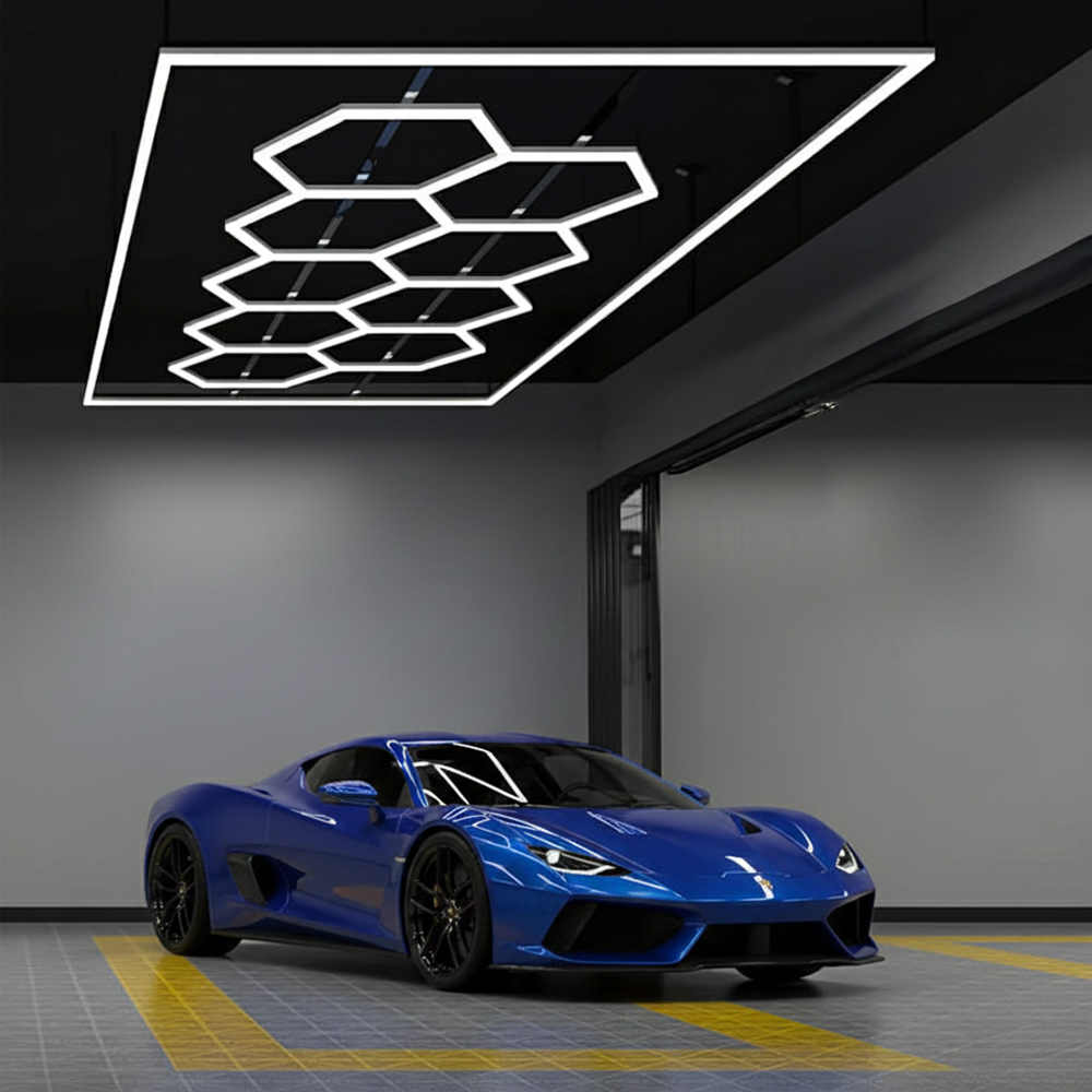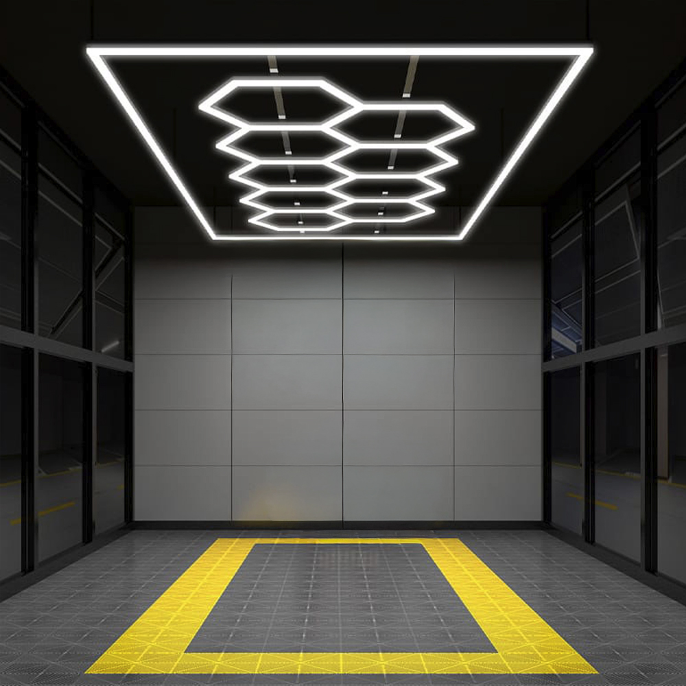 • Design modulare ed elegante: il design innovativo "a nido d'ape" permette una distribuzione uniforme della luce, migliorando la visibilità e la sicurezza in ambienti di lavoro. Il telaio in alluminio di ciascuna lampada offre resistenza senza rinunciare all'estetica.