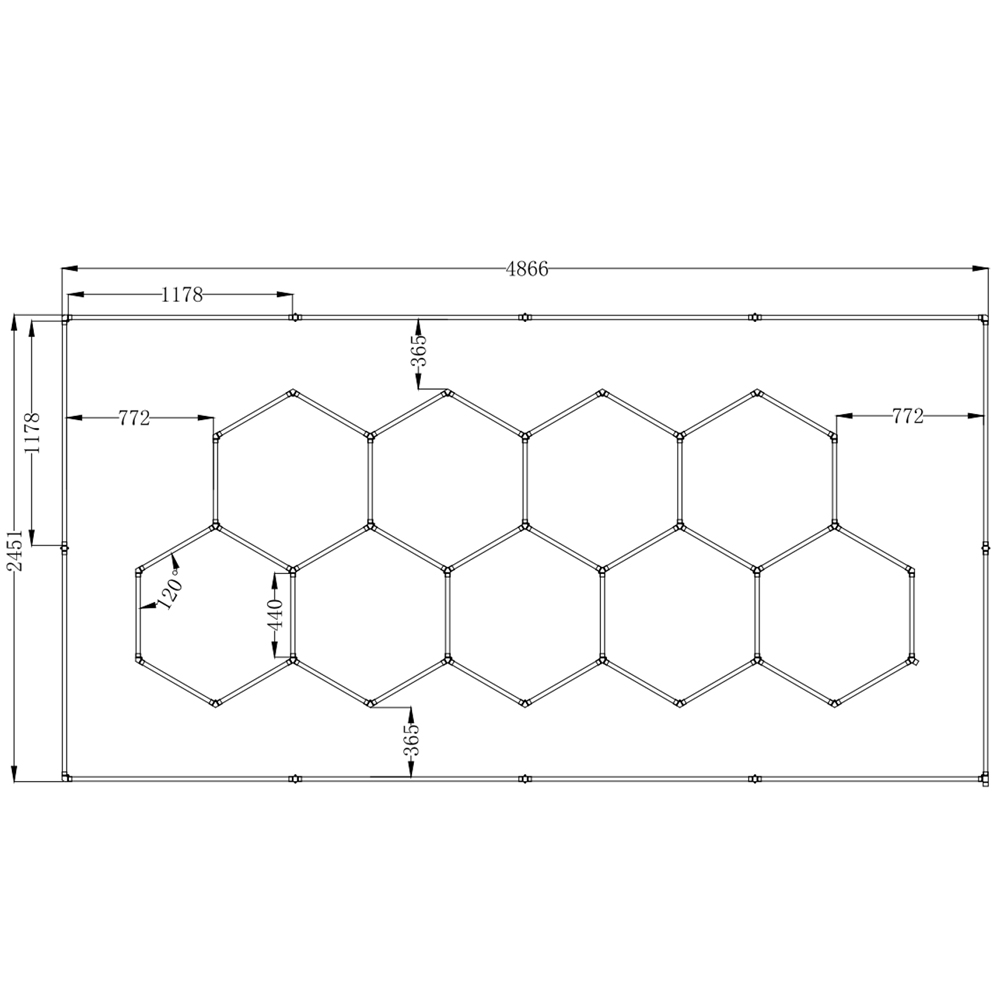 Luci LED nido d'ape a soffitto per officina SOGI LAM-ES11 - 9 esagoni - 6500 K - 426 W - 4866x2451 mm