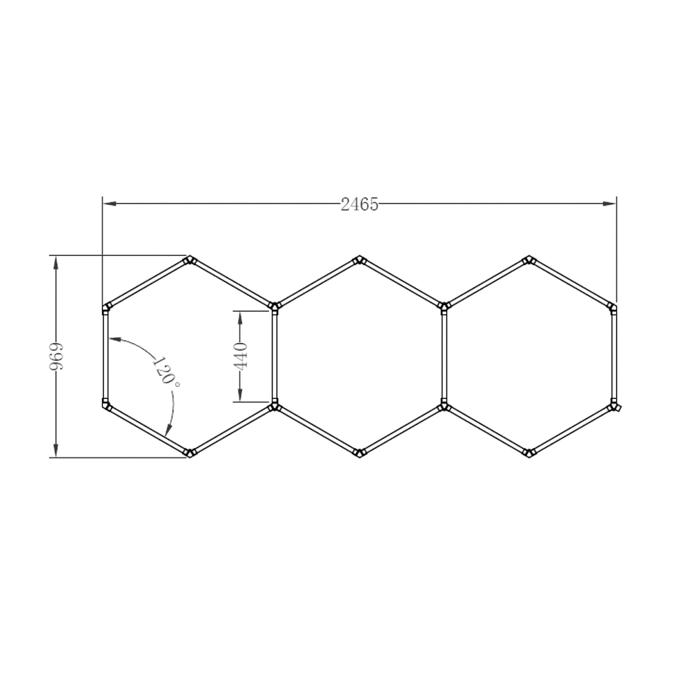 Luci LED esagonali car detailing SOGI LAM-ES13 - 3 esagoni - 6500 K - 96 W - 2465x969 mm