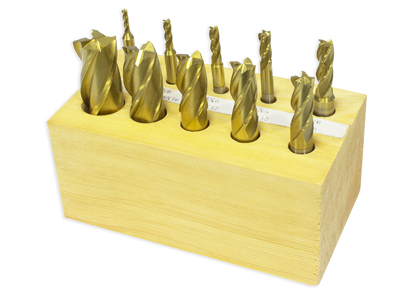 NUOVO SET DI 10 FRESE CILINDRICHE A 4 TAGLIENTI PER FINITURA PROFESSIONALE RIVESTITE AL TIN
