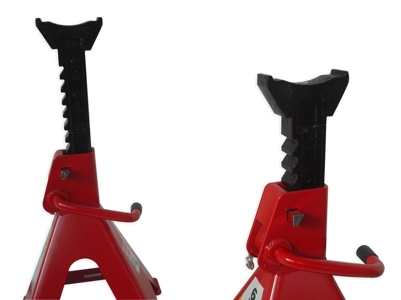La coppia di cavalletti SOGI X4-10 hanno una porta di 3 Tonnellate con la possibilitò di regolazione a cricco dell'altezza supporto. Sono in grado tenere sollevata l'auto con un'altezza massima di 420 mm da terra, indispensabilie per il cambio di pneumatici sgocciolamento del liquido di raffreddamento è cambio olio.