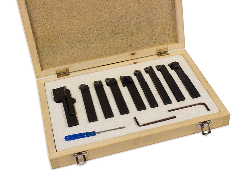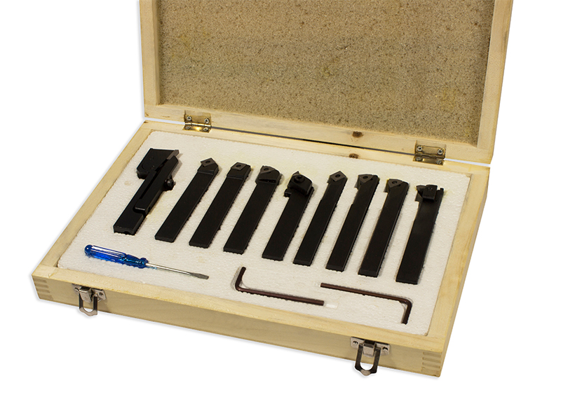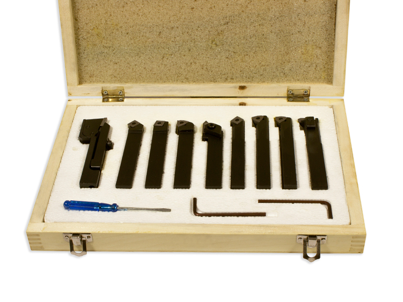 NUOVO SET DI UTENSILI TORNIO A INSERTO PLACCHETTA IN METALLO DURO DA 9 PEZZI CON TRONCATORE FINITORE SGROSSATORE BARENO SOGI UPL-09