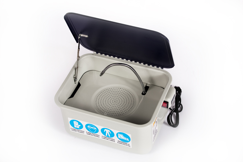 La vasca lavapezzi mobile SOGI SP-LV-ER  è dotata di pompa a recupero con pratico ugello orientabile è tubo con pennello aggiuntivo, ideale per il lavaggio di carter di motori, particolari, strumenti d'officina, pezzi vari che necessitano la pulizia. Comprende un ripiano forato per lo sgocciolamento del pezzo, asportabile per i pezzi da lavare più ingombranti ed una vaschetta per i particolari più piccoli.Macchina realizzata in acciaio e verniciata a polvere epossidica per resistere a lungo nel tempo, dotata di ruote per un pratico spostamento all'interno dell'autofficina. È importante non usare gasolio, benzina e altri tipi di solventi all'interno della vasca per il lavaggio dei pezzi.Inoltre questa vasca può essere utilizzata a casa o in officina per lavori di pulizia, idonea all'utilizzo di agenti sgrassanti diluiti in acqua come i prodotti SOGI Cleaner o lo Sgrassante SOGI K110. È dotata di certificazioni CE a norma di legge.Caratteristiche tecniche della vasca SP-LV-ERDimensioni interne vasca: L x P x A 710 x 480 x 260  mm (A 130 mm con piano)Dimensioni vaschetta: L x P x A 254 x 162 x 105 mmDimensioni interne vaschetta: L x P x A 240x 150 x 85  mmDimensione ripiano forato: 470 x 460 mmCapacità 75 LtAlimentazione pompa: 230V - 50 Hz - 26 WPortata pompa: 16 Lt/minDimensioni di ingombro richiusa: L x P x A  775 x 540 x 880 mmPeso: 28 KgGaranzia 24 mesiIn dotazionePennello con tuboPompa di recuperoFiltro pompa di recuperoVaschetta per particolari forataPiano forato per lo sgocciolamentoRuote di spostamento con bloccaggio