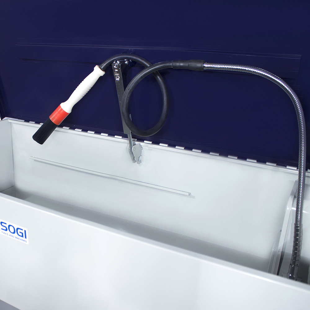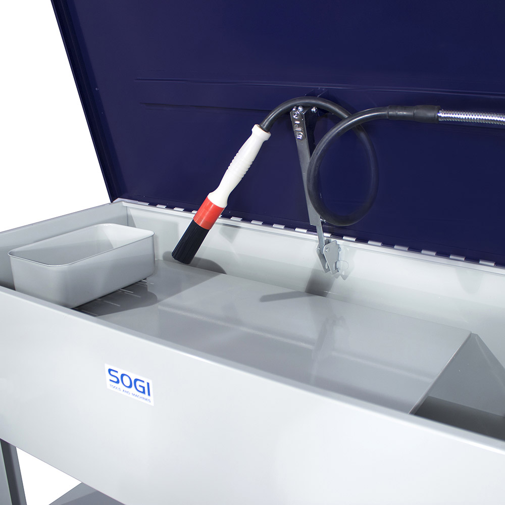 Inoltre questa vasca può essere utilizzata in officina, laboratorio per lavori di pulizia, idonea all'utilizzo di agenti sgrassanti diluiti in acqua come i prodotti SOGI Cleaner o lo Sgrassante SOGI K110. È dotata di certificazioni CE a norma di legge.