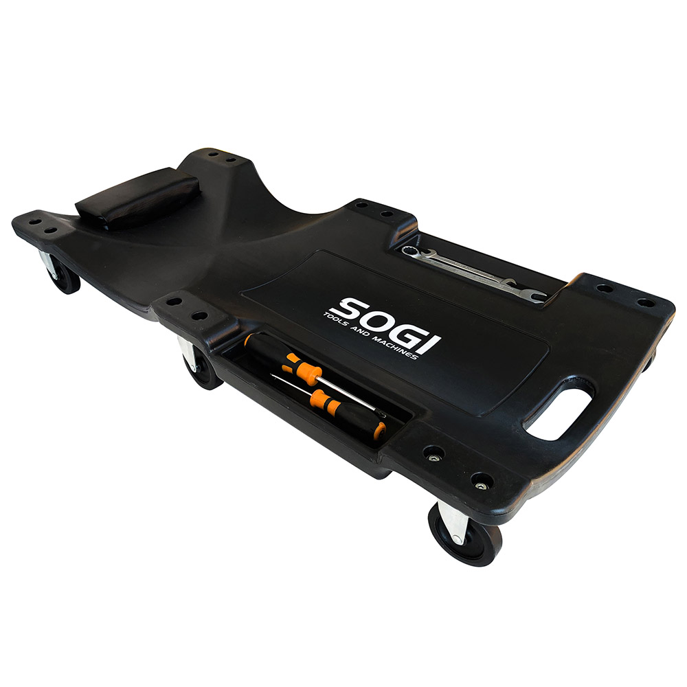 Carrello sotto-auto SOGI X4-03 con poggiatesta e 2 vani laterali portautensili - 6 ruote piroettanti