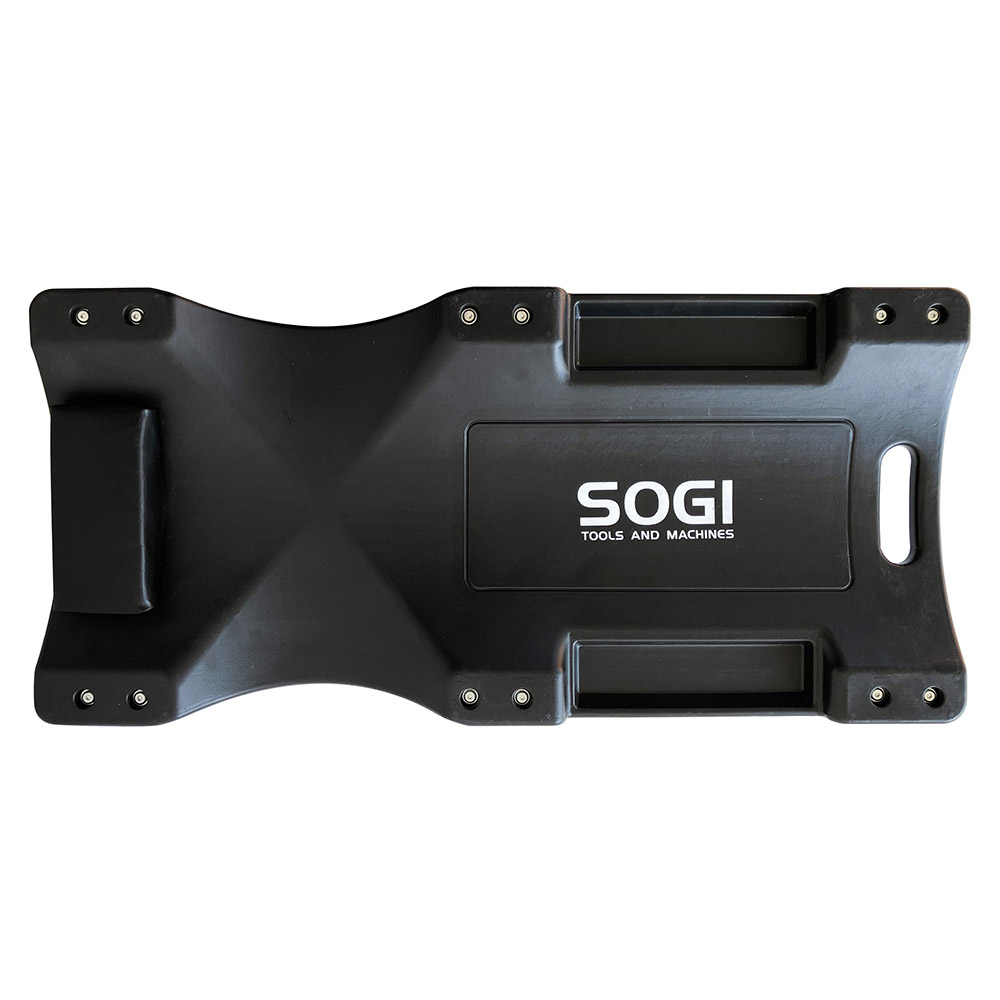 Il carrello sotto-auto professionale SOGI X4-03 ha un telaio in HDPE (polietilene ad alta densità), ossia un polimero termoplastico dalle molteplici peculiarità: è atossico ed inodore, ha un'alta resistenza a diversi prodotti chimici, è riciclabile ed ha un'elevata durezza. Tutti questi vantaggi, uniti alla leggerezza (solo 4 kg in peso!), lo rendono un prodotto affidabile ed al contempo pratico.