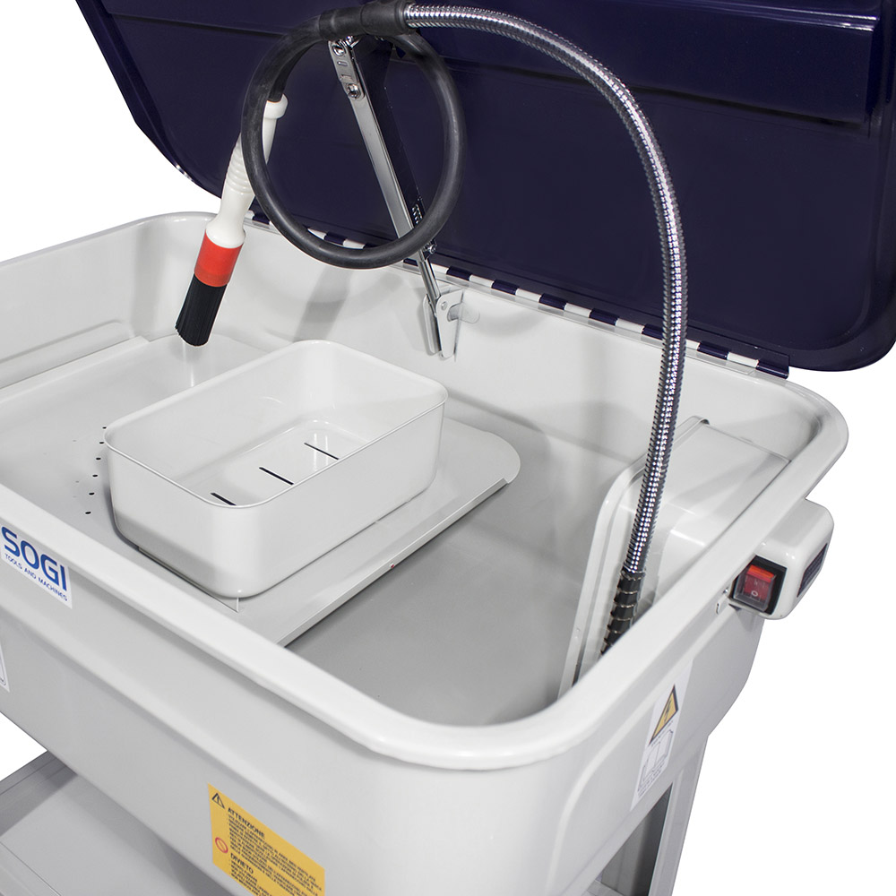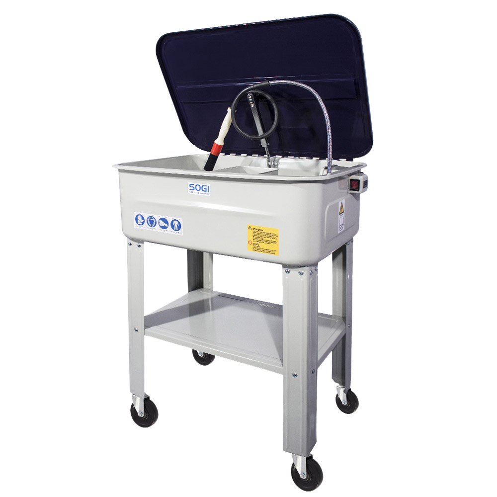 Inoltre questa vasca può essere utilizzata a casa o in officina per lavori di pulizia, idonea all'utilizzo di agenti sgrassanti diluiti in acqua come i prodotti SOGI Cleaner o lo Sgrassante SOGI K110. È dotata di certificazioni CE a norma di legge.