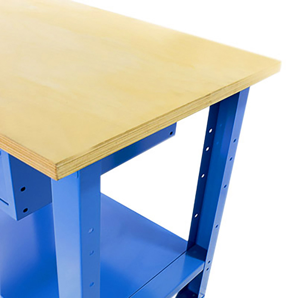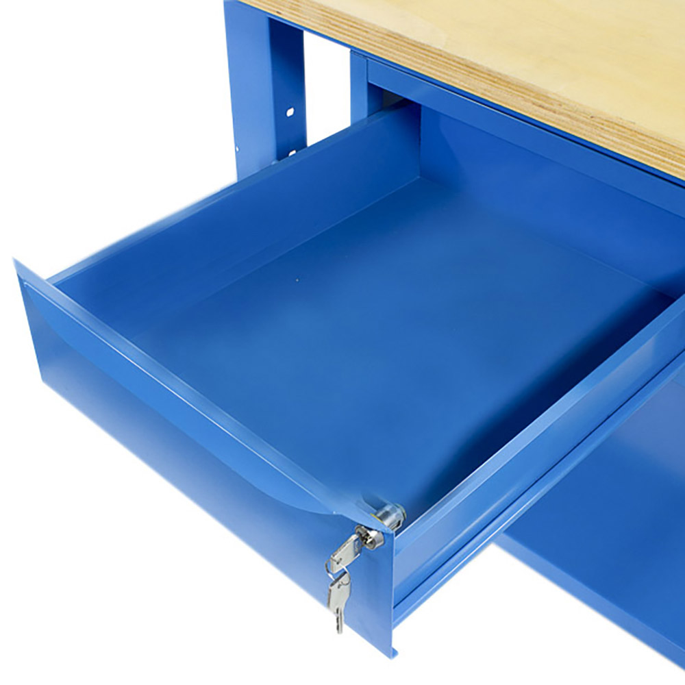 Banco da lavoro SOGI 1 metro con piano in legno portata 1000 kg + 1 cassetto - blu/rosso