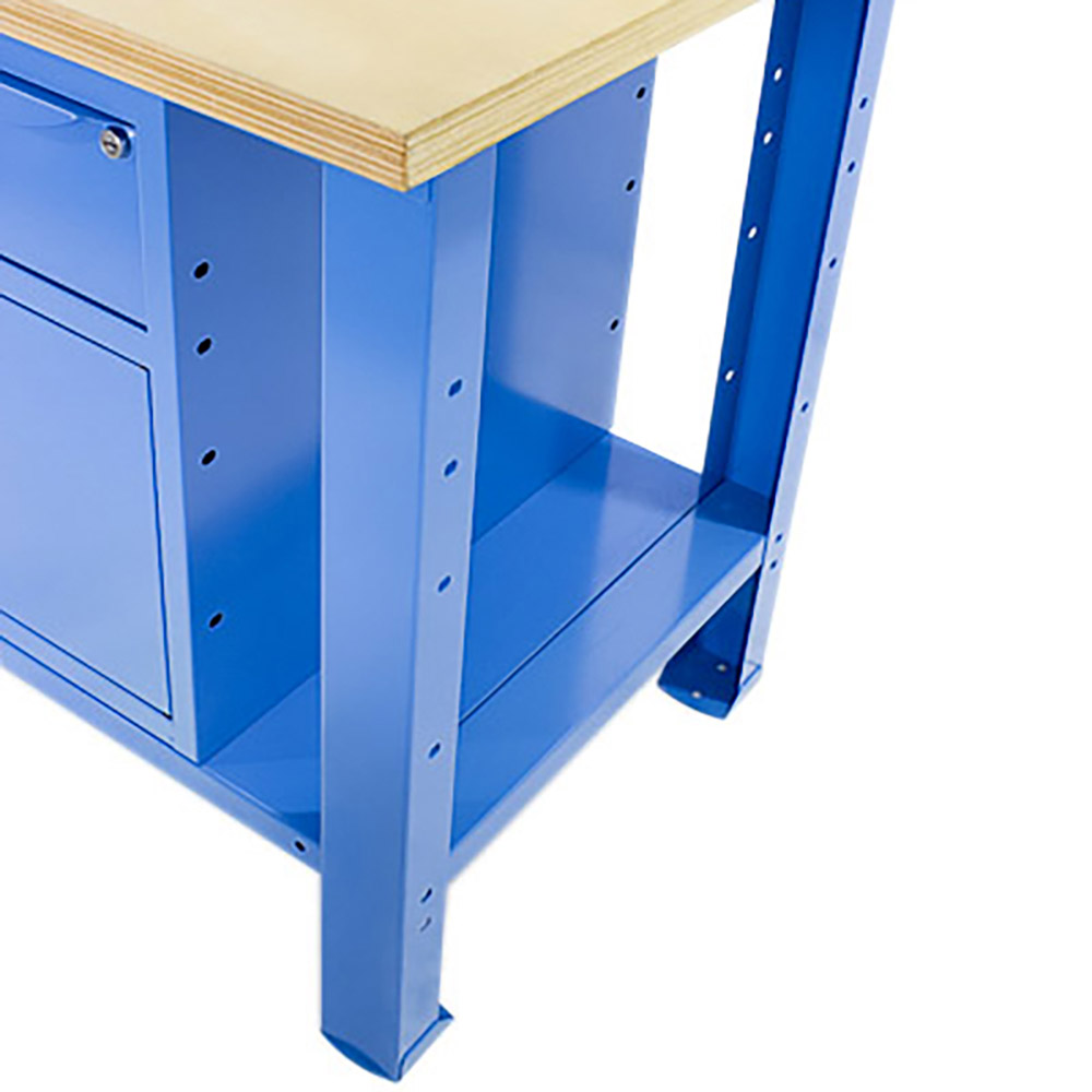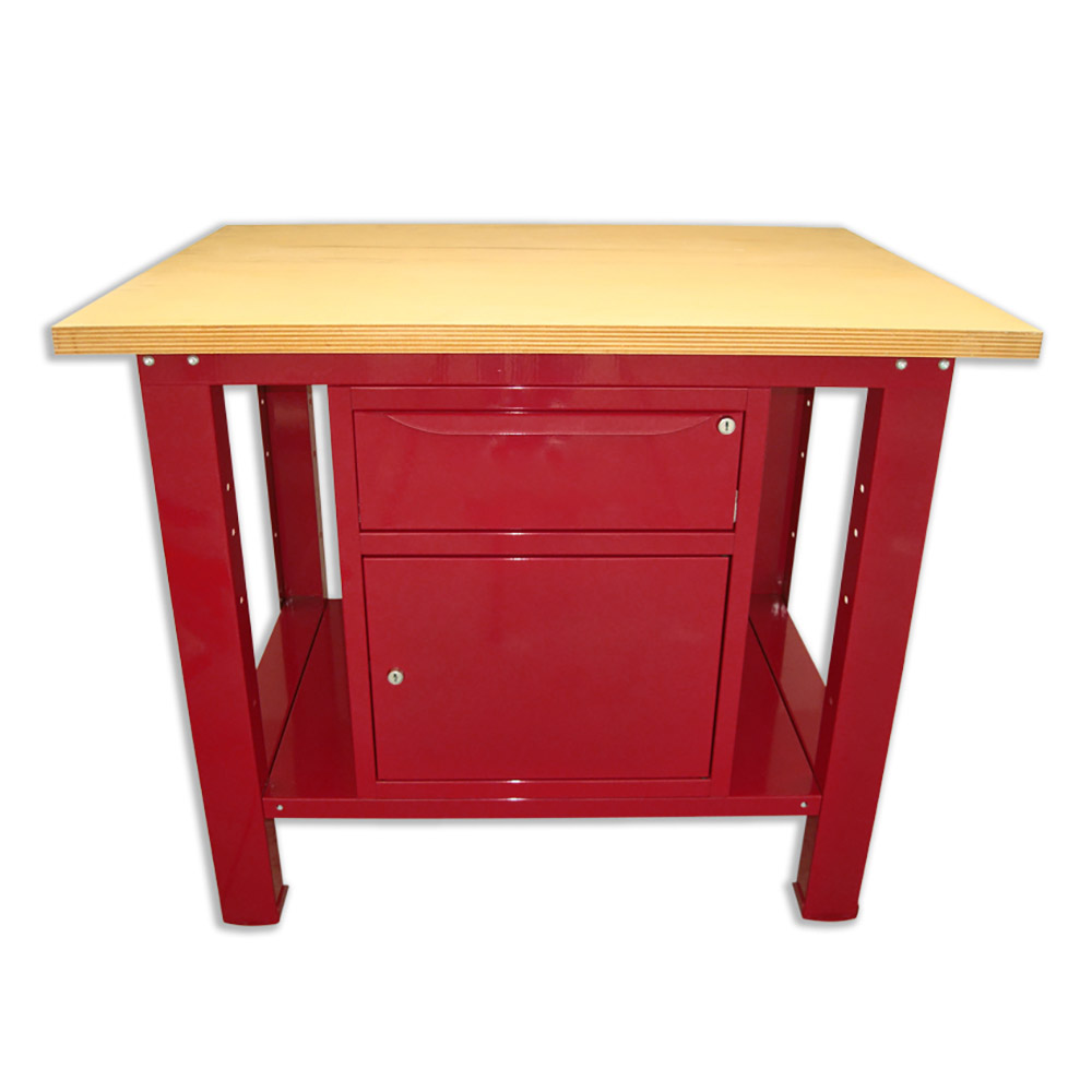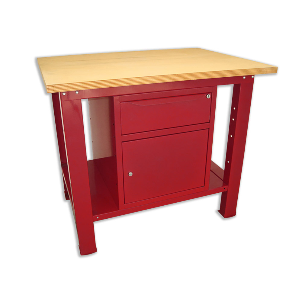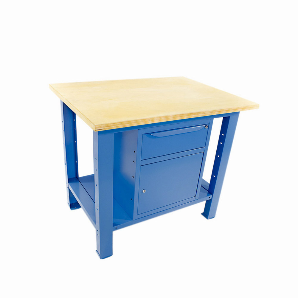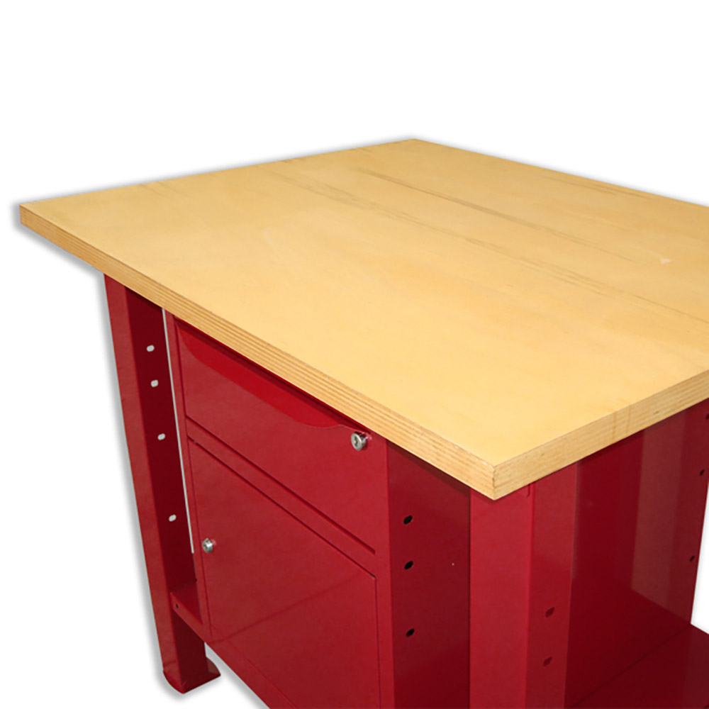 Banco da lavoro SOGI 1 metro con piano in legno + armadio con anta e cassetto - blu/rosso