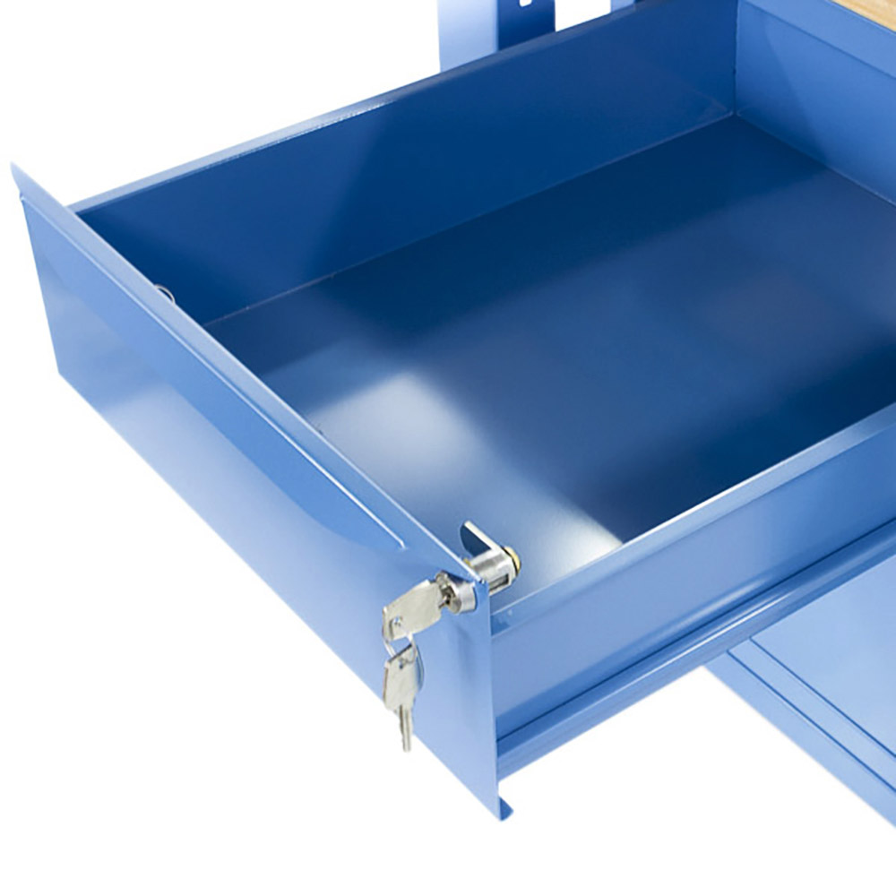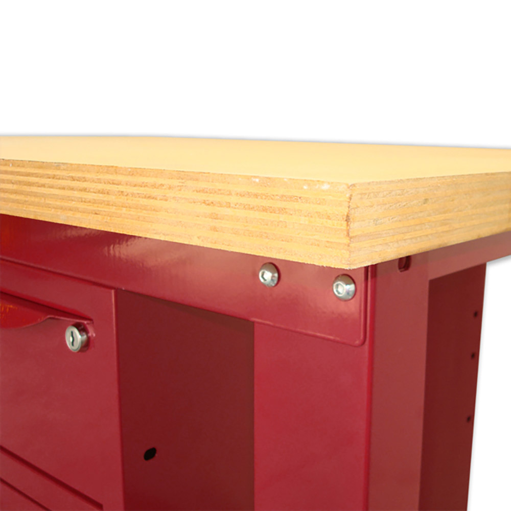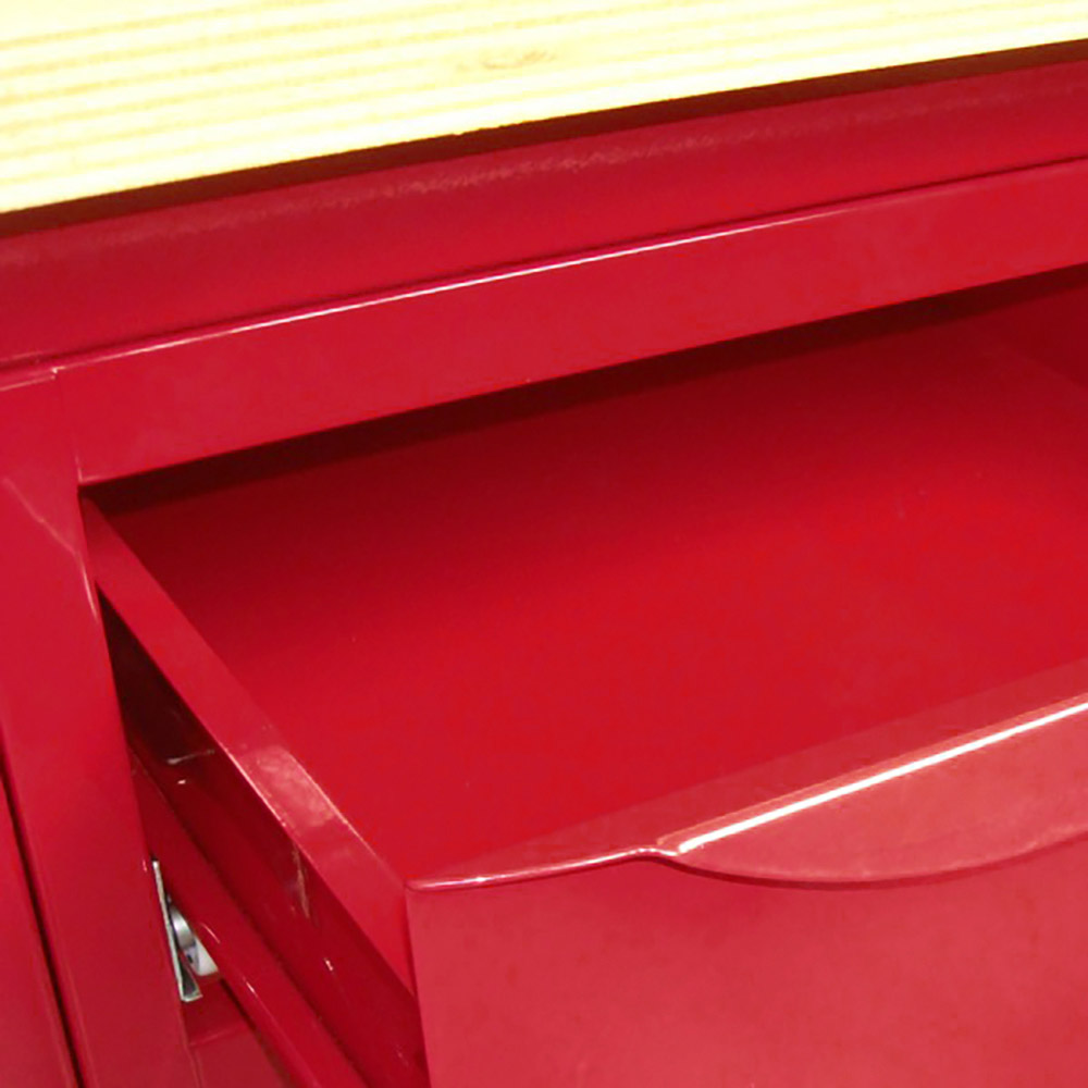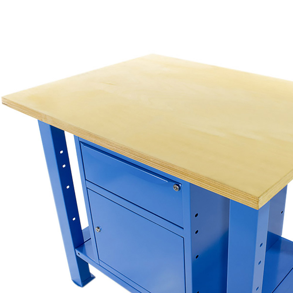 Banco da lavoro SOGI 1 metro con piano in legno + armadio con anta e cassetto - blu/rosso