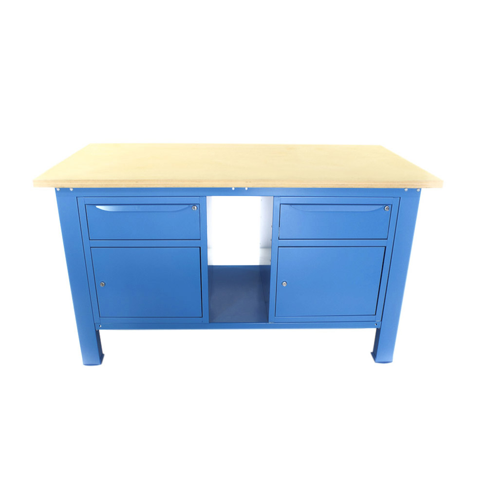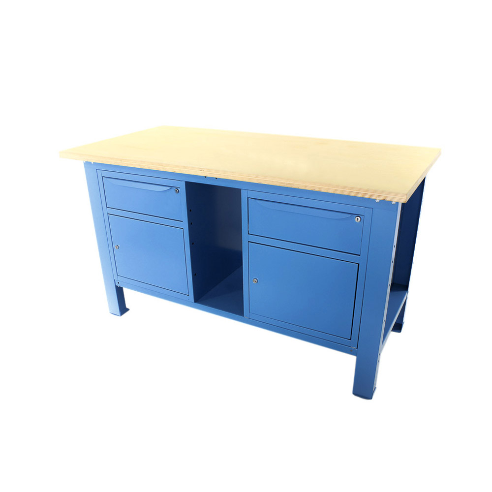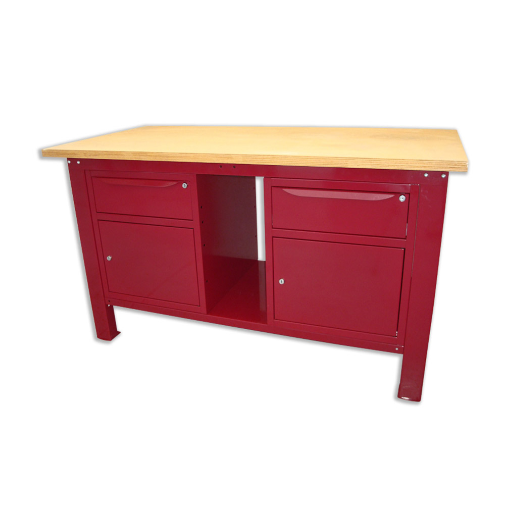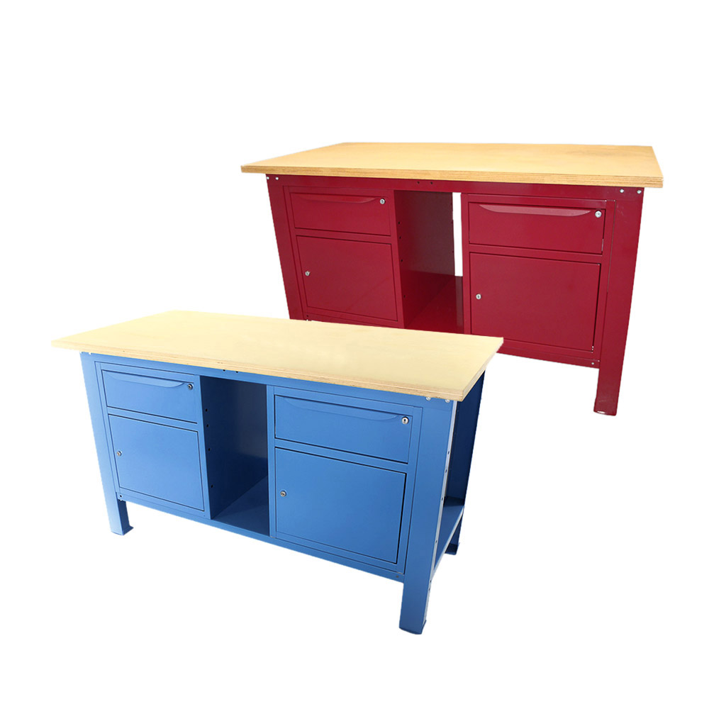 Banco da lavoro SOGI 1,5 metri con piano in legno + 2 armadi con anta e cassetto - blu/rosso