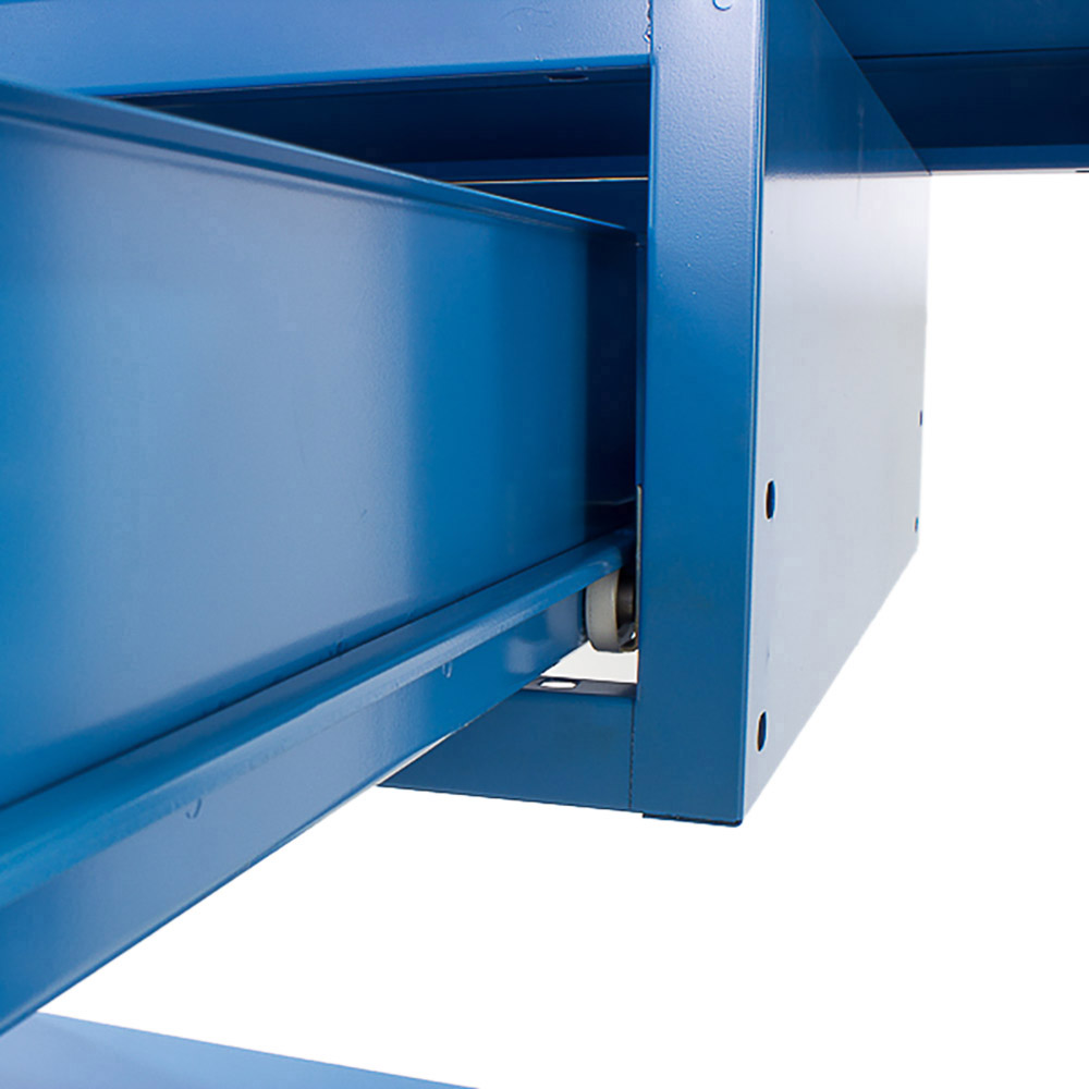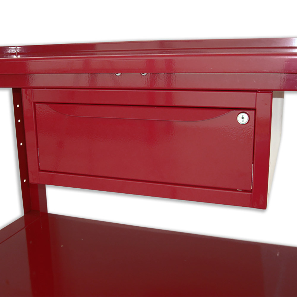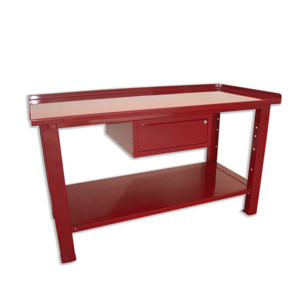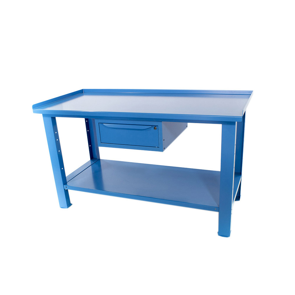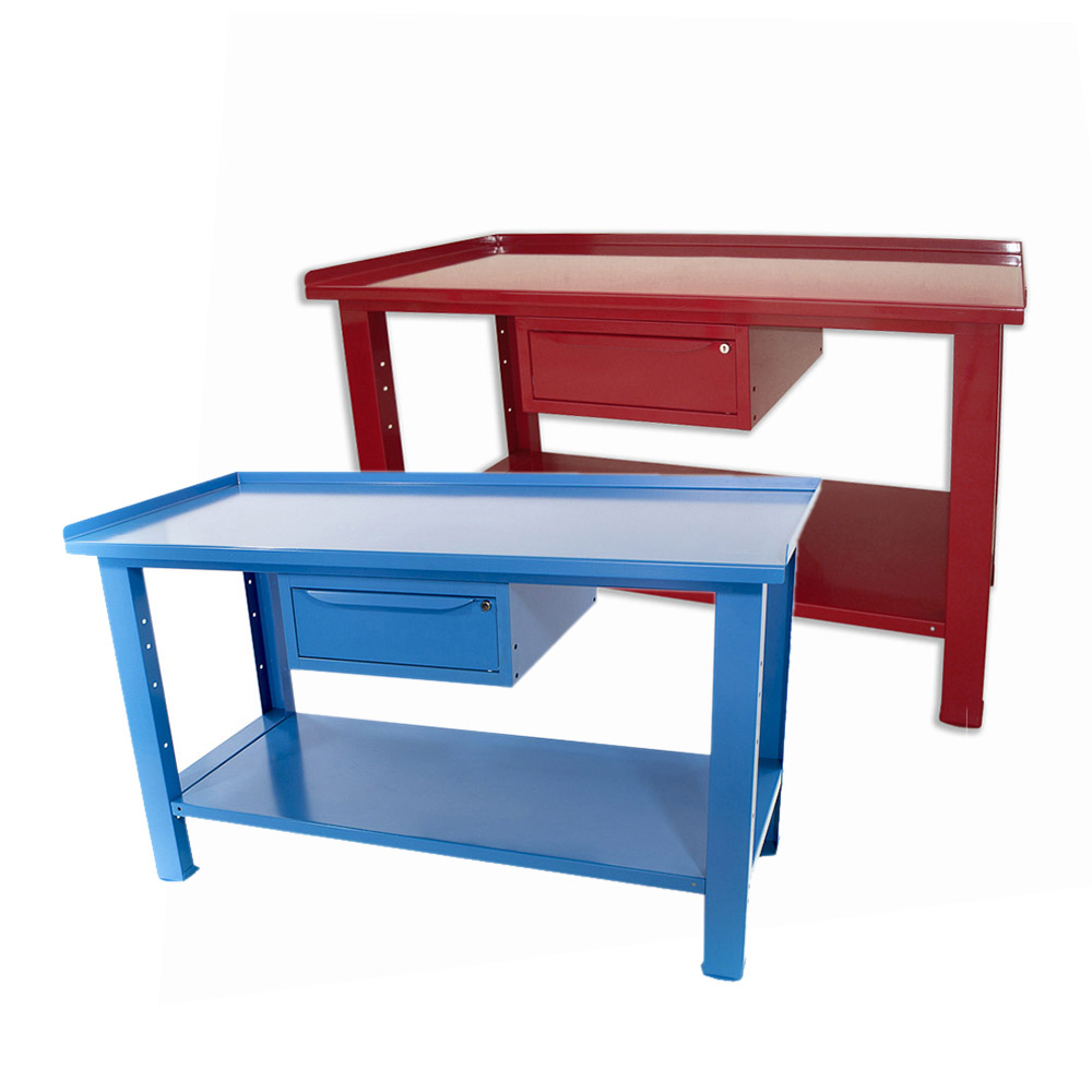 Banco da lavoro SOGI 1,5 metri con piano in acciaio portata 1000 kg + 1 cassetto - blu/rosso