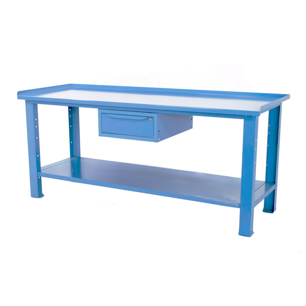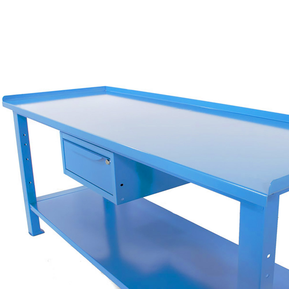 Banco da lavoro SOGI 2 metri con piano in acciaio portata 1000 kg + 1 cassetto - blu/rosso