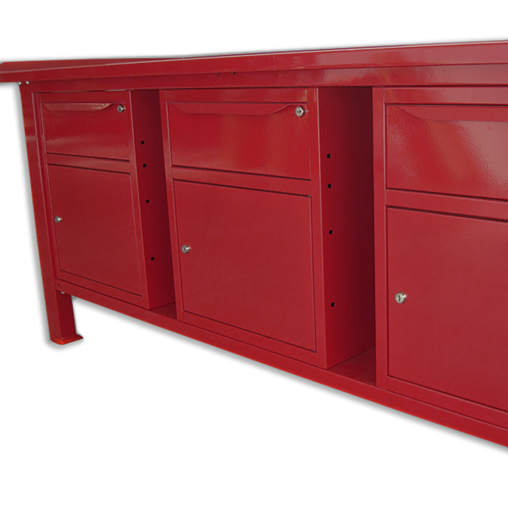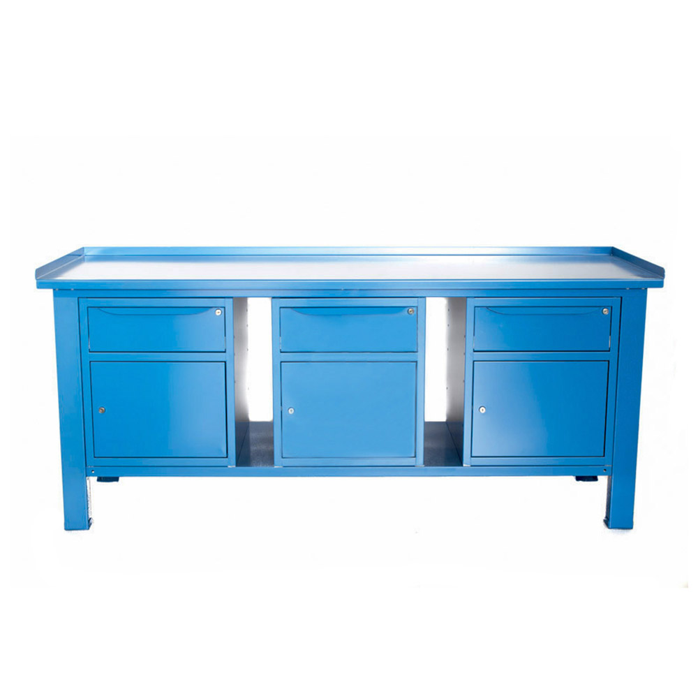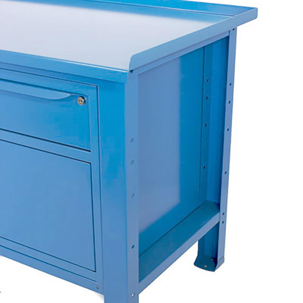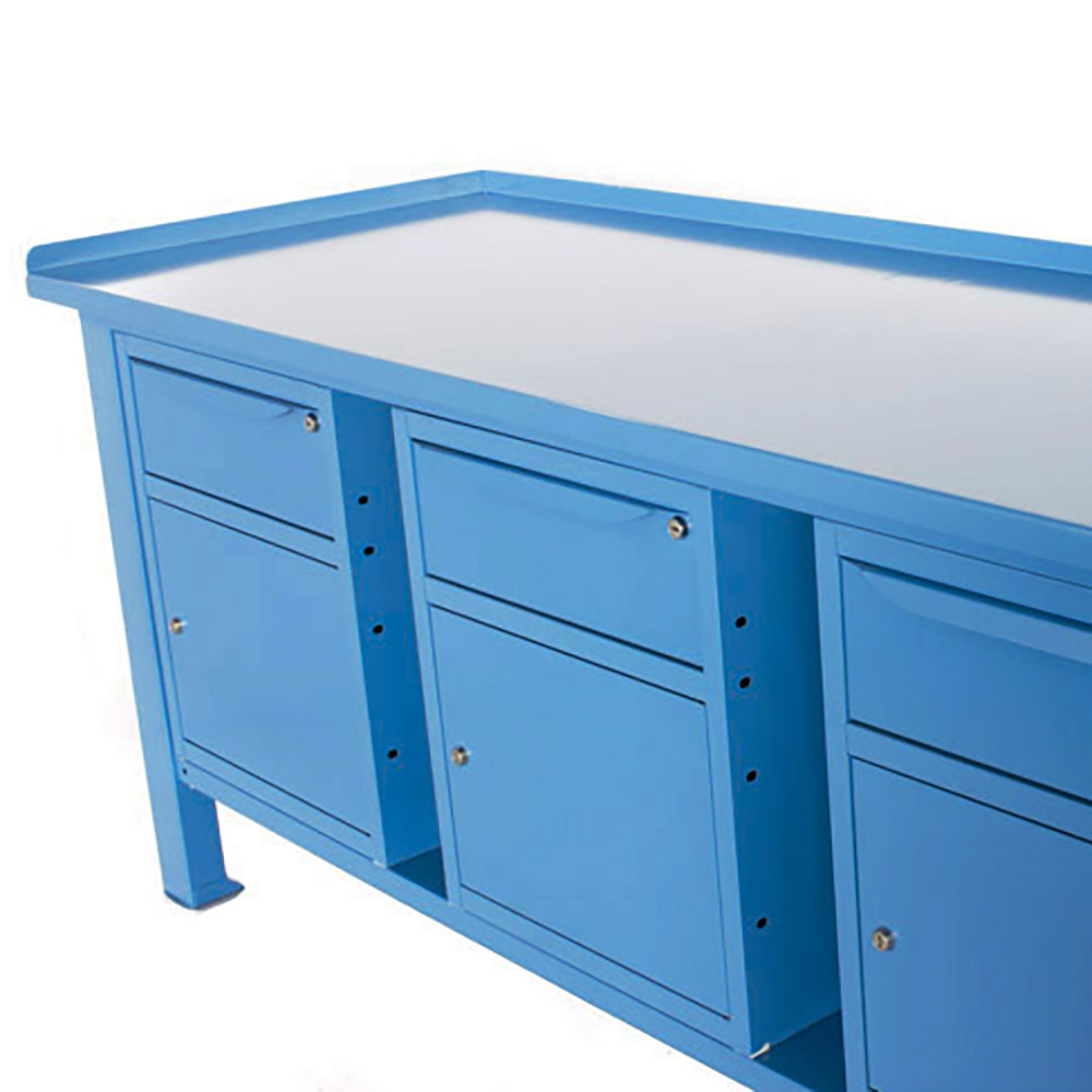 Banco da lavoro SOGI 2 metri con piano in acciaio + 3 armadi con anta e cassetto - blu/rosso