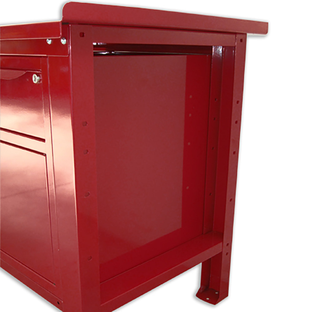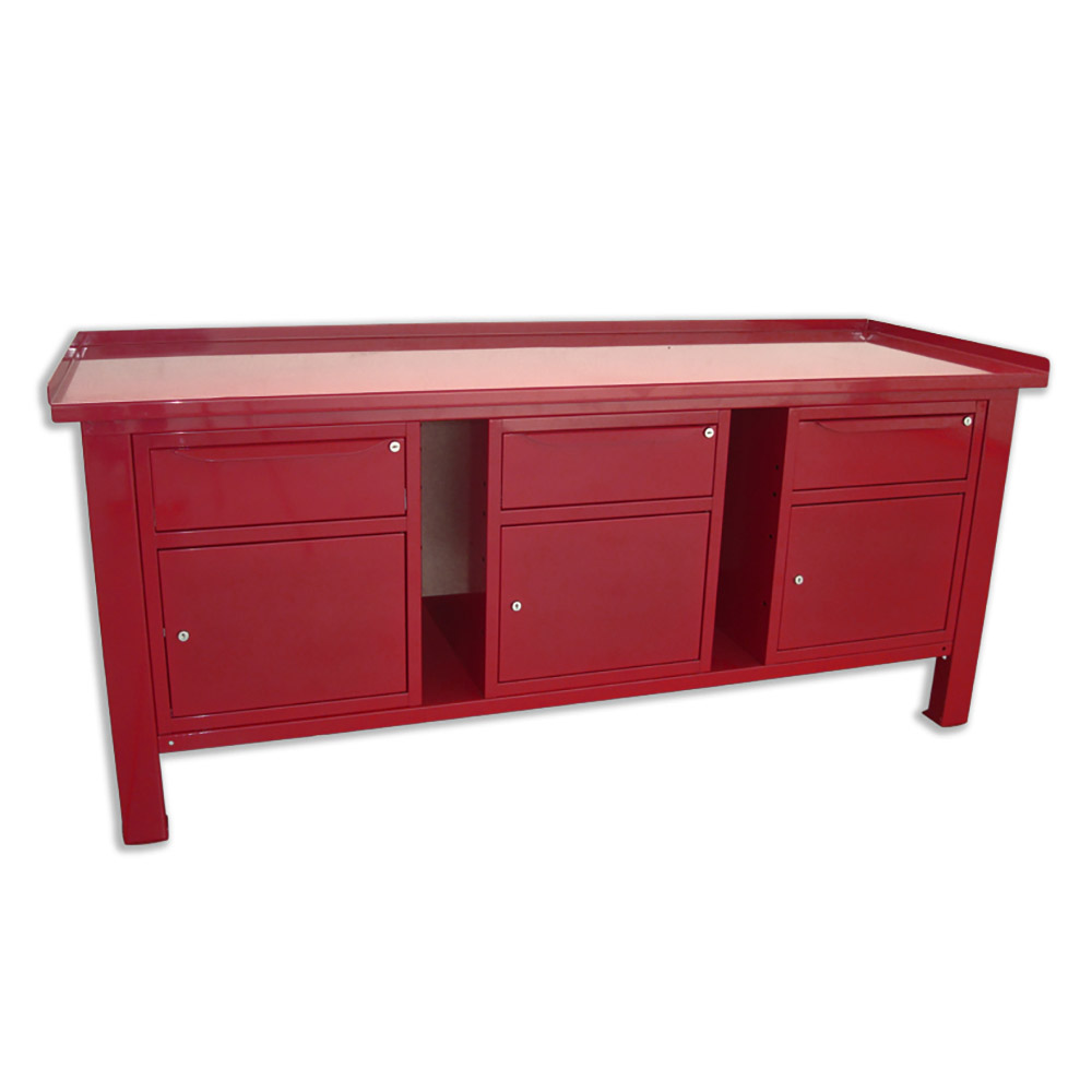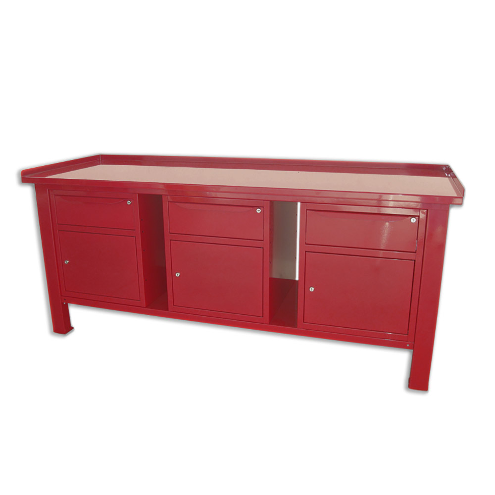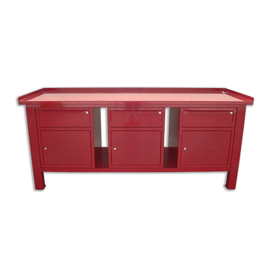 Banco da lavoro SOGI 2 metri con piano in acciaio + 3 armadi con anta e cassetto - blu/rosso