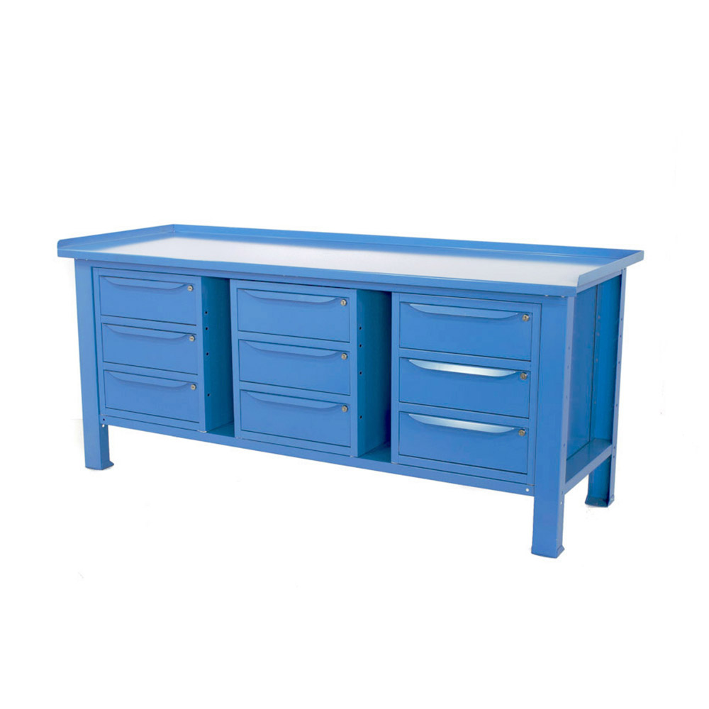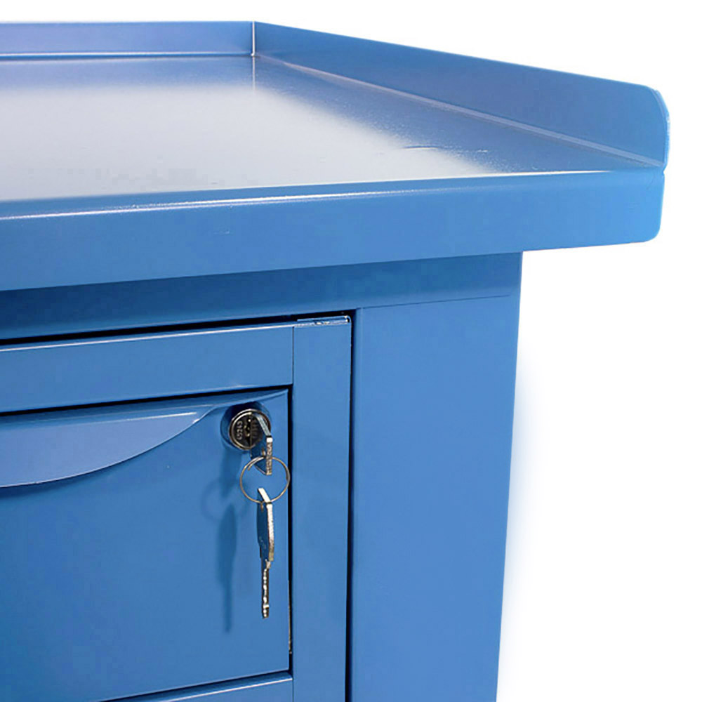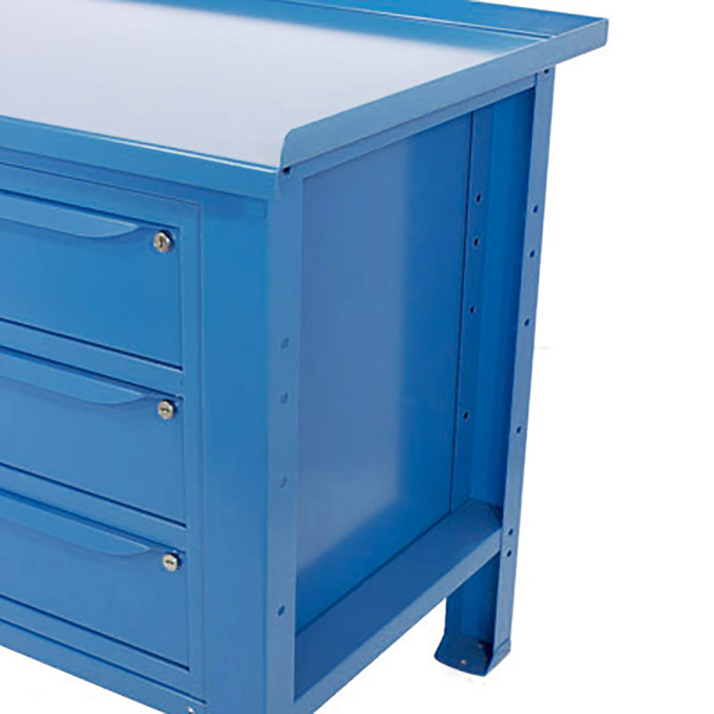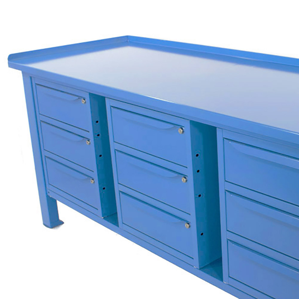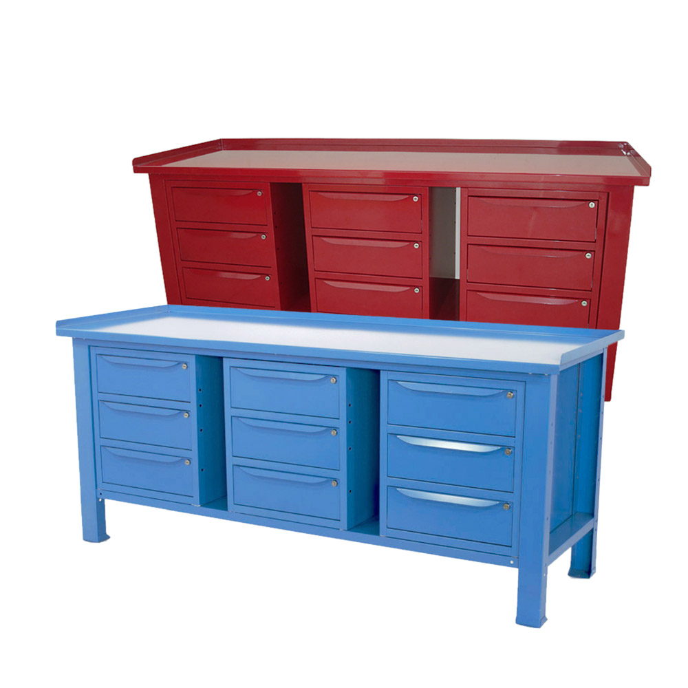Banco da lavoro SOGI 2 m con piano in acciaio portata 1000 kg + 3 armadi a 3 cassetti - blu/rosso