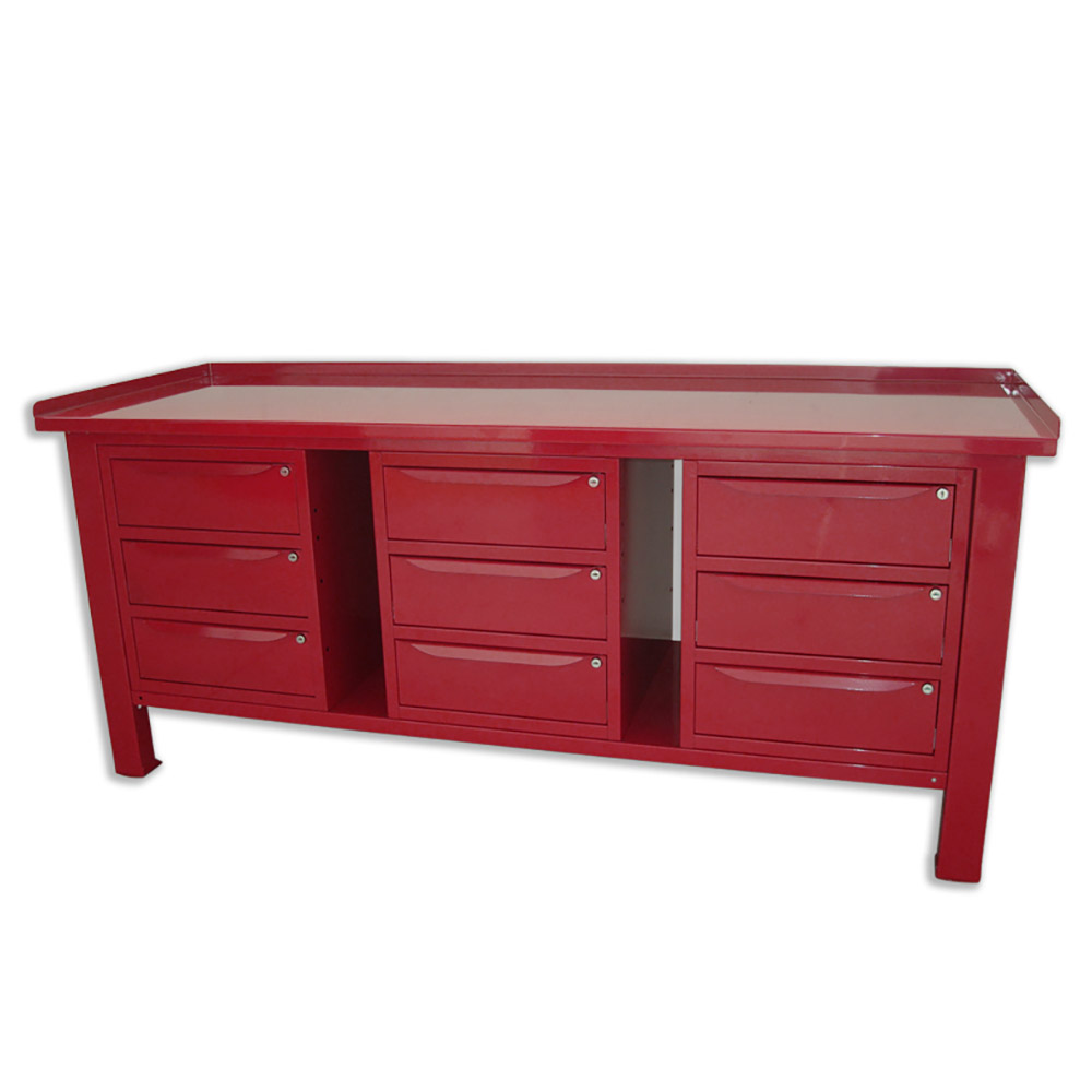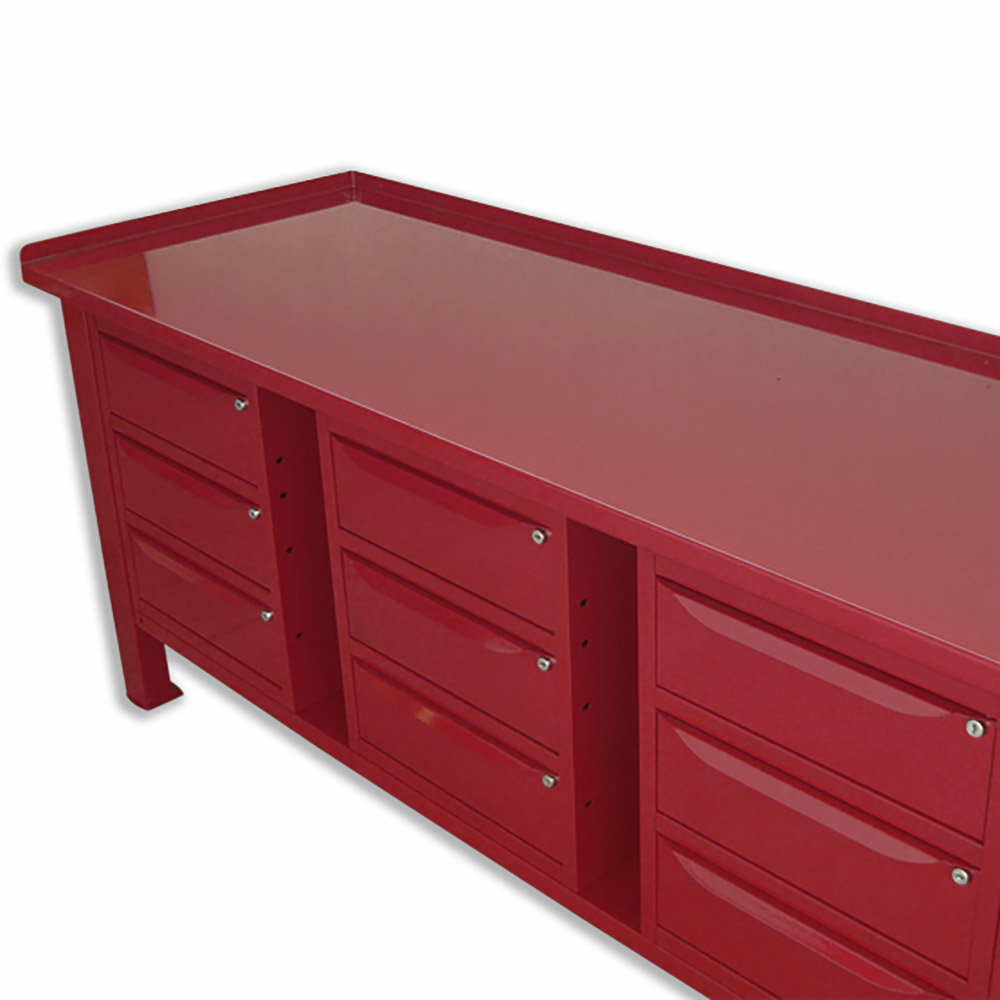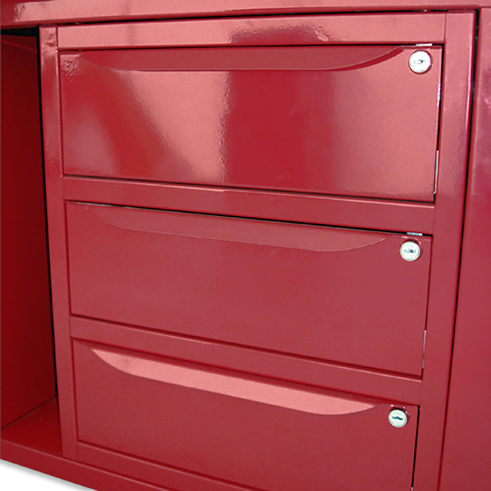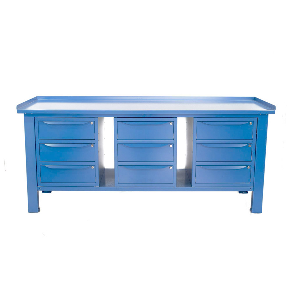 Banco da lavoro SOGI 2 m con piano in acciaio portata 1000 kg + 3 armadi a 3 cassetti - blu/rosso