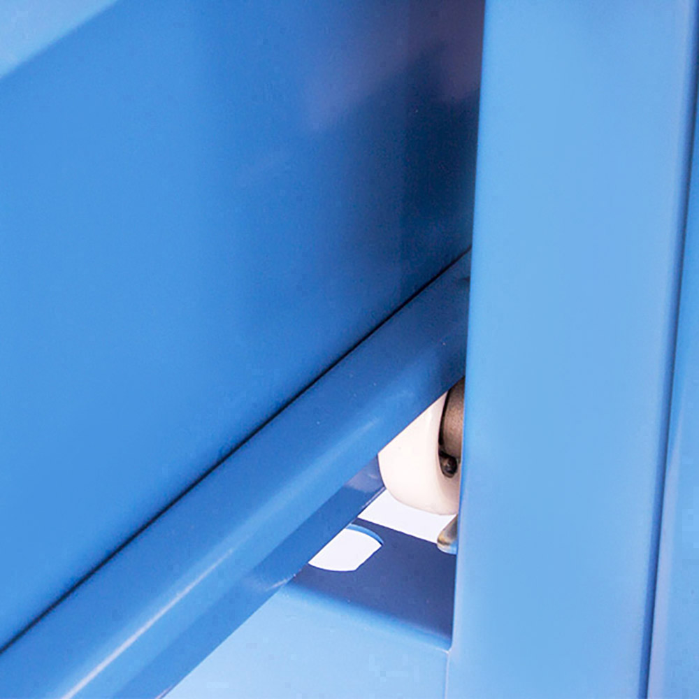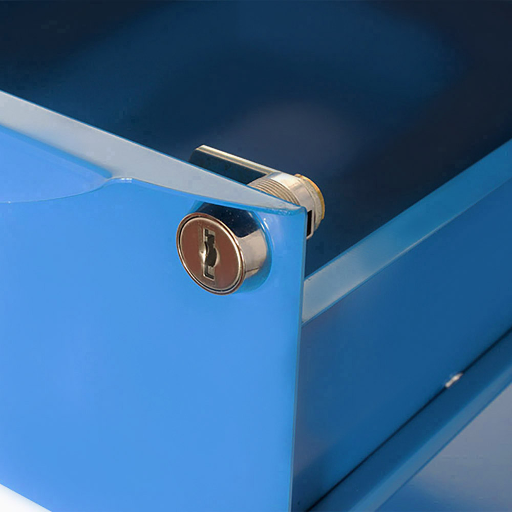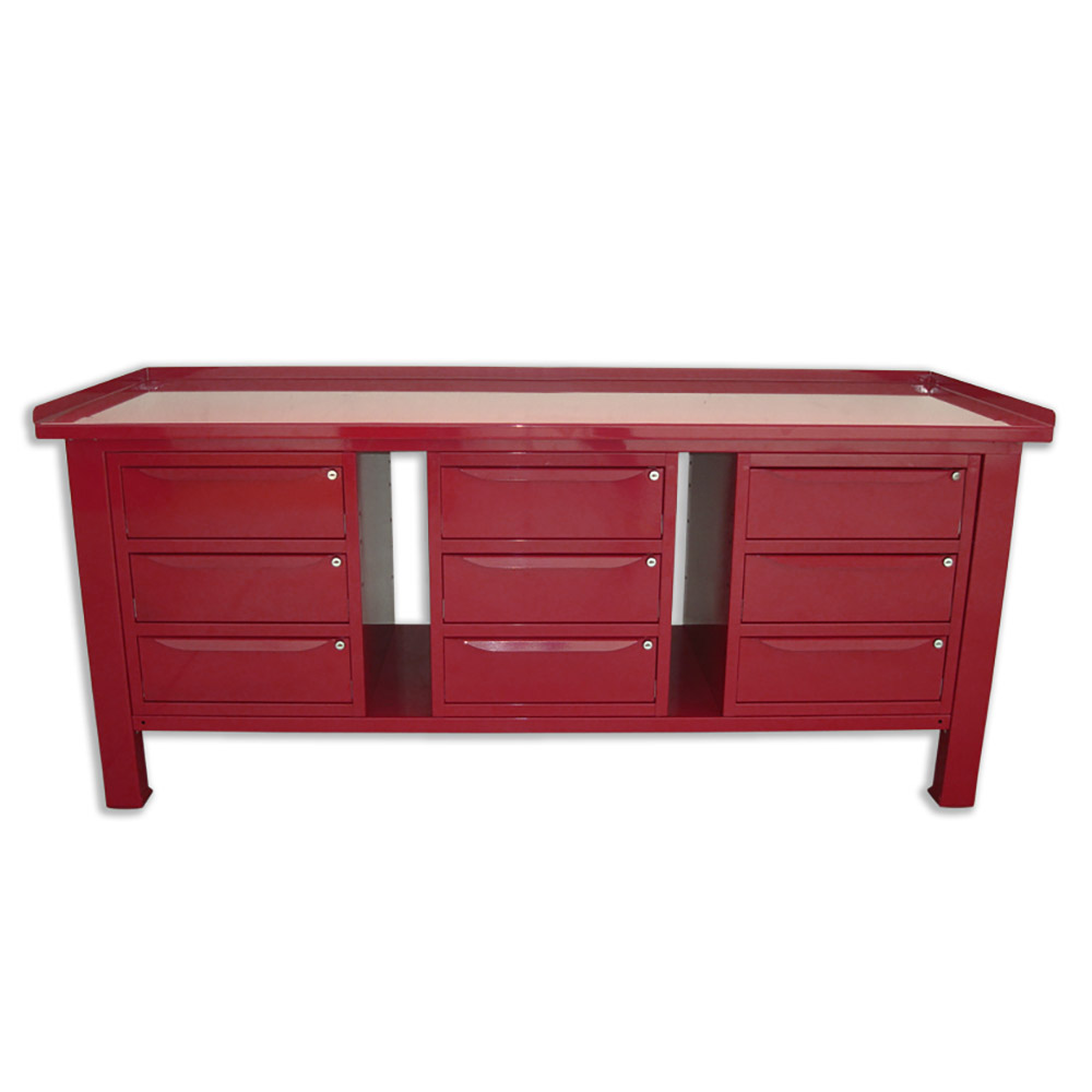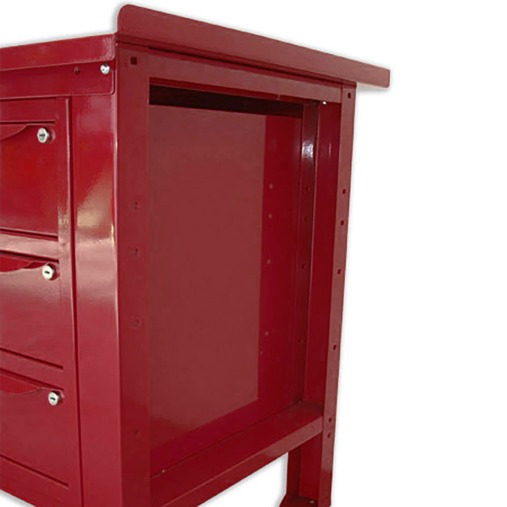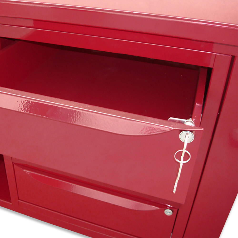 Banco da lavoro SOGI 2 m con piano in acciaio portata 1000 kg + 3 armadi a 3 cassetti - blu/rosso