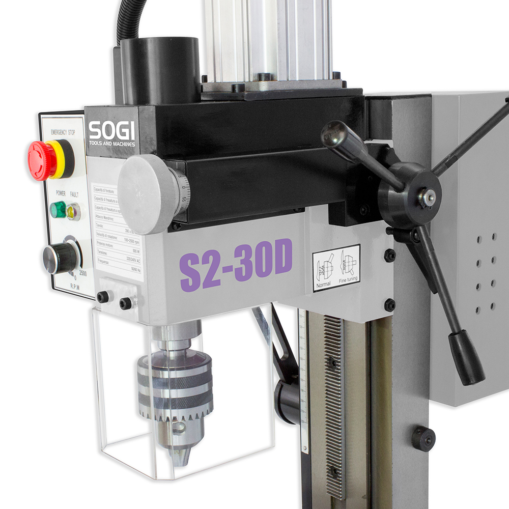 Il trapano-fresa da banco SOGI S2-30D è una macchina utensile funzionale e compatta, in grado di eseguire forature, alesature, filettature (per mezzo di appositi maschiatori a frizione) e fresature (con l'ausilio di utensili a candela, ad inserti o a disco) su materiali quali ghisa e acciaio. Grazie alle sue dimensioni ridotte ed al peso contenuto, la fresatrice da banco SOGI S2-30D si adatta particolarmente bene sia ad un uso professionale che hobbistico.