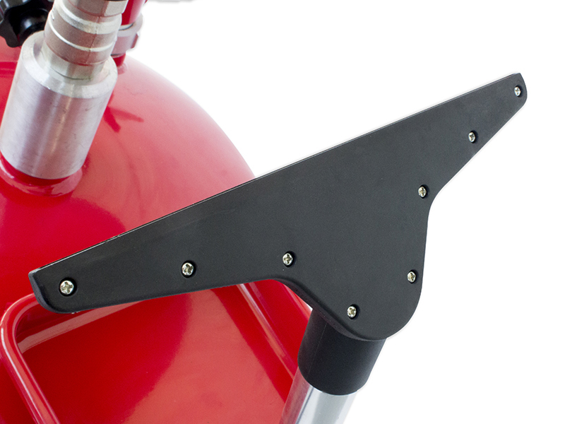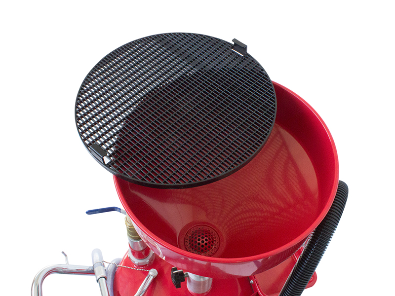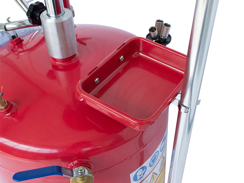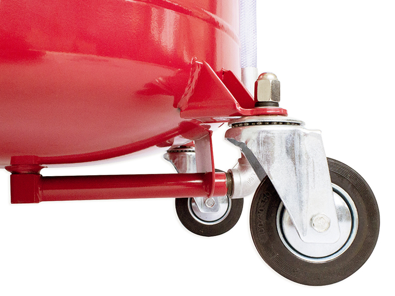 La macchina è realizzata in acciaio e verniciato a polvere per una lunga durata nel tempo, il serbatoio è dotato di pratiche ruote e comoda maniglia per il trasporto in officina o garage, grazie alla vasca per la raccolta dell'olio a caduta vi è presente un apposita retinatura per lasciare sgocciolare tappi e filtri olio ecc.