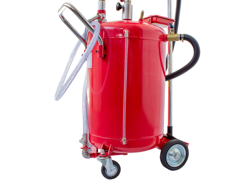 La pompa di aspirazione olio SOGI REC-90P è dotata di aspiratore pneumatico con serbatoio da 110 litri per il recupero di olio esausto e lo svuotamento, questo strumento è di alta qualità professionale di cui ha la scopa per l'aspirazione di olio presente sul pavimento. Inoltre può svuotare l'olio dai motori o il cambio può essere effetuato sia che l'auto sia sollevata da terra che stazionata a terra.