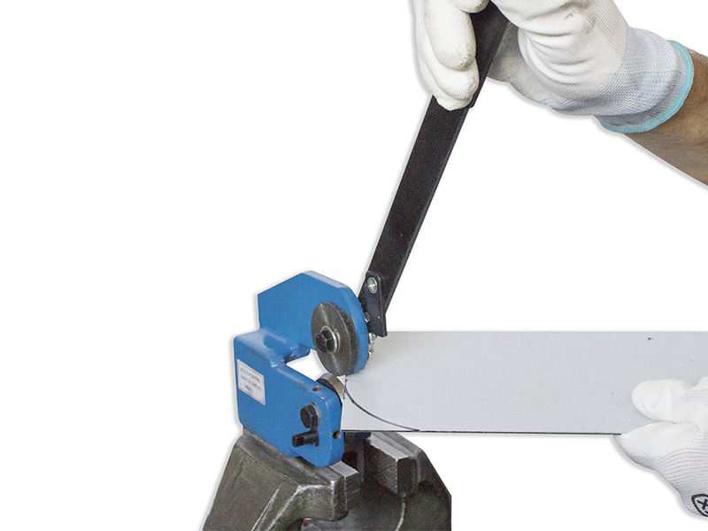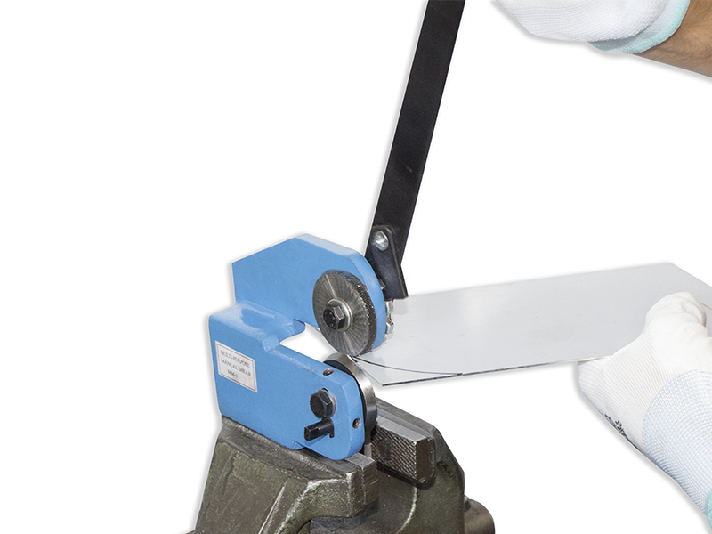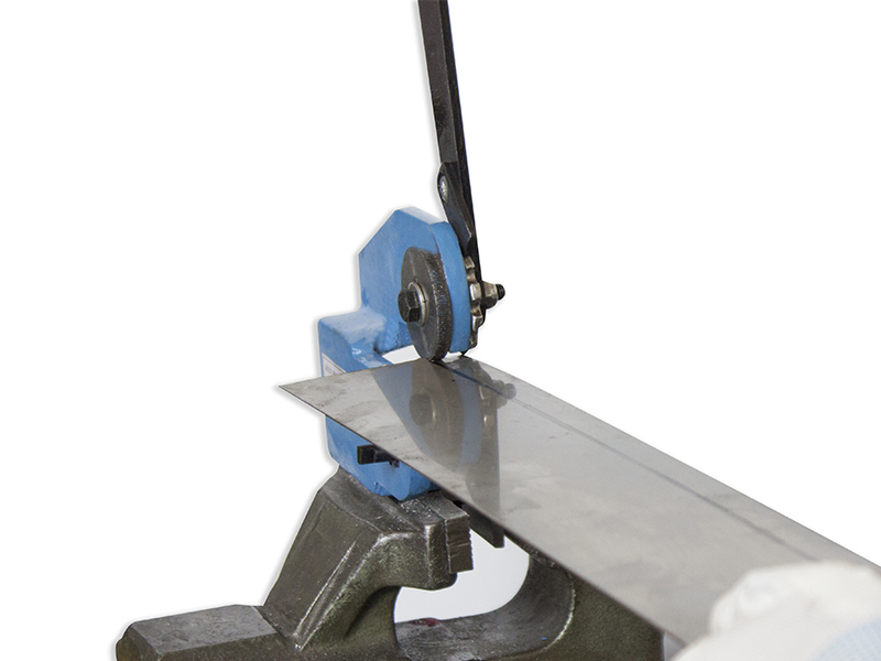 Cesoia per il taglio lamiera a mano SOGI C-15 da banco professionale per l'esecuzione di tagli curvi su lamiera di spessore 1,5 mm può eseguire la tranciatura in modo rettilineo o curvo con leva di comando a cricchetto.