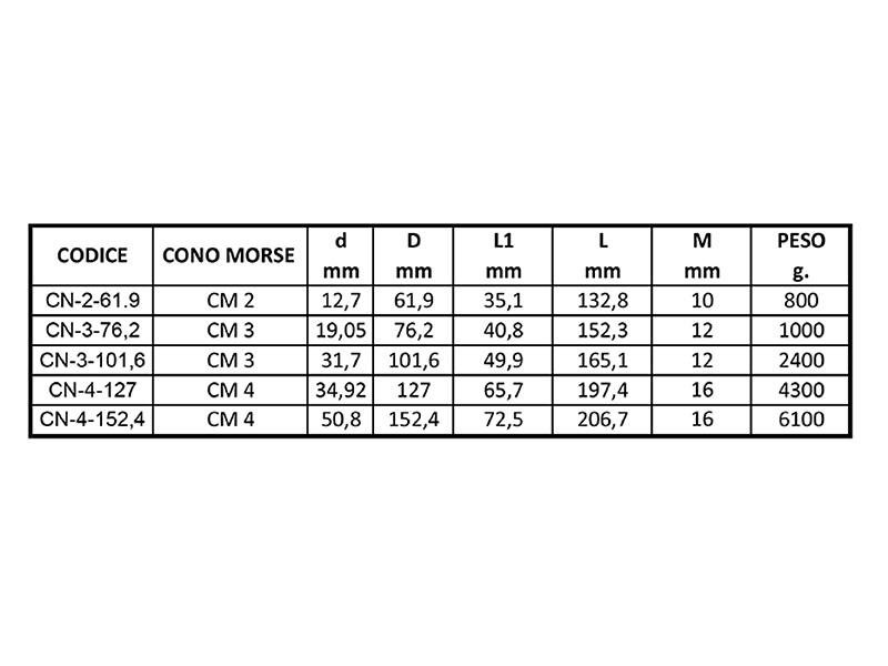 Caratteristiche tecniche della contropunta tornio SOGI CN-2-61.9