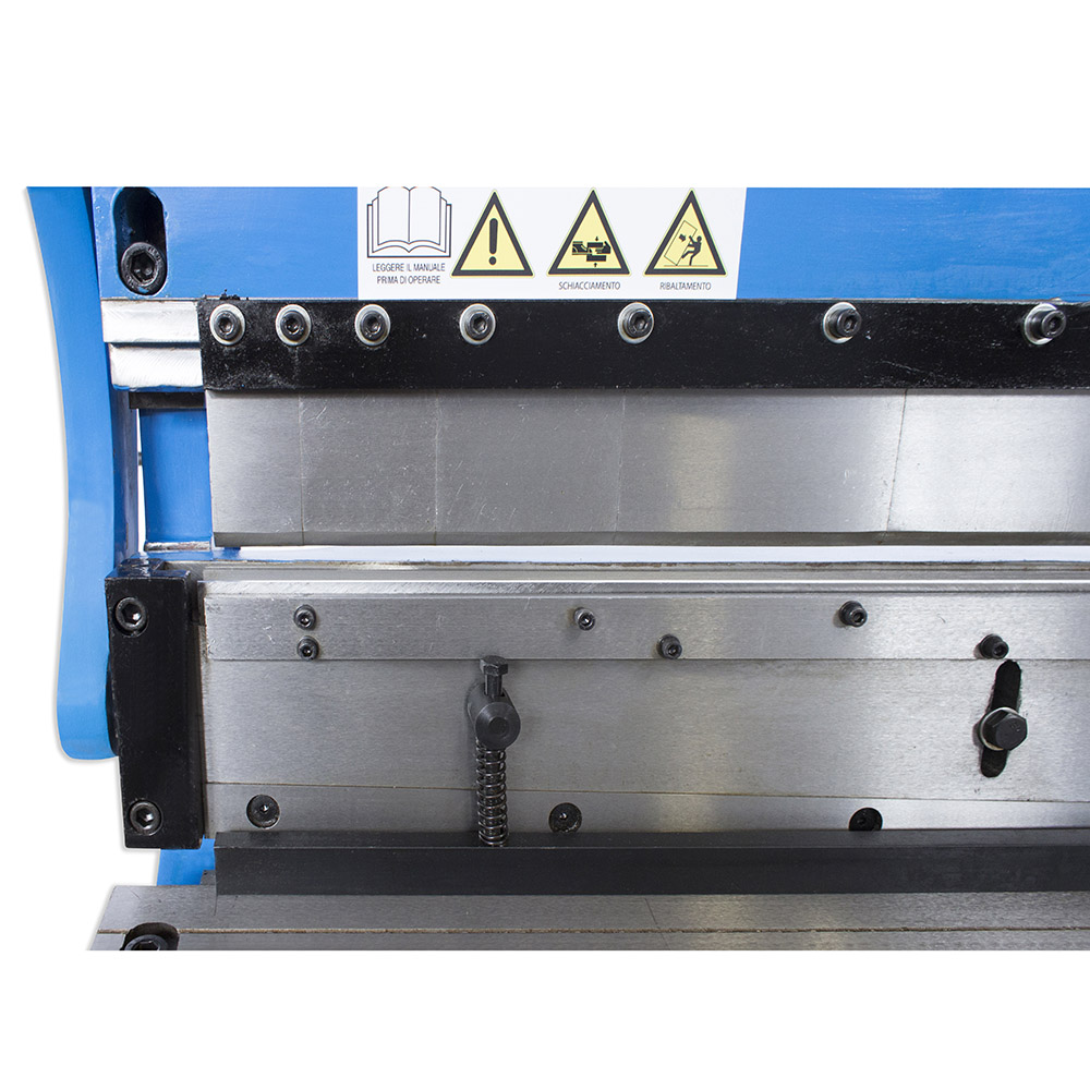 Utilizza una lama da 1320 mm, è adatta alla lavorazione di lamiere con uno spessore massimo di 1.5 mm (lamiere in acciaio di media durezza), con un angolo massimo di piegatura di 90°. E' l'ideale quindi per la realizzazione di anelli, tubi, coni, scatole.