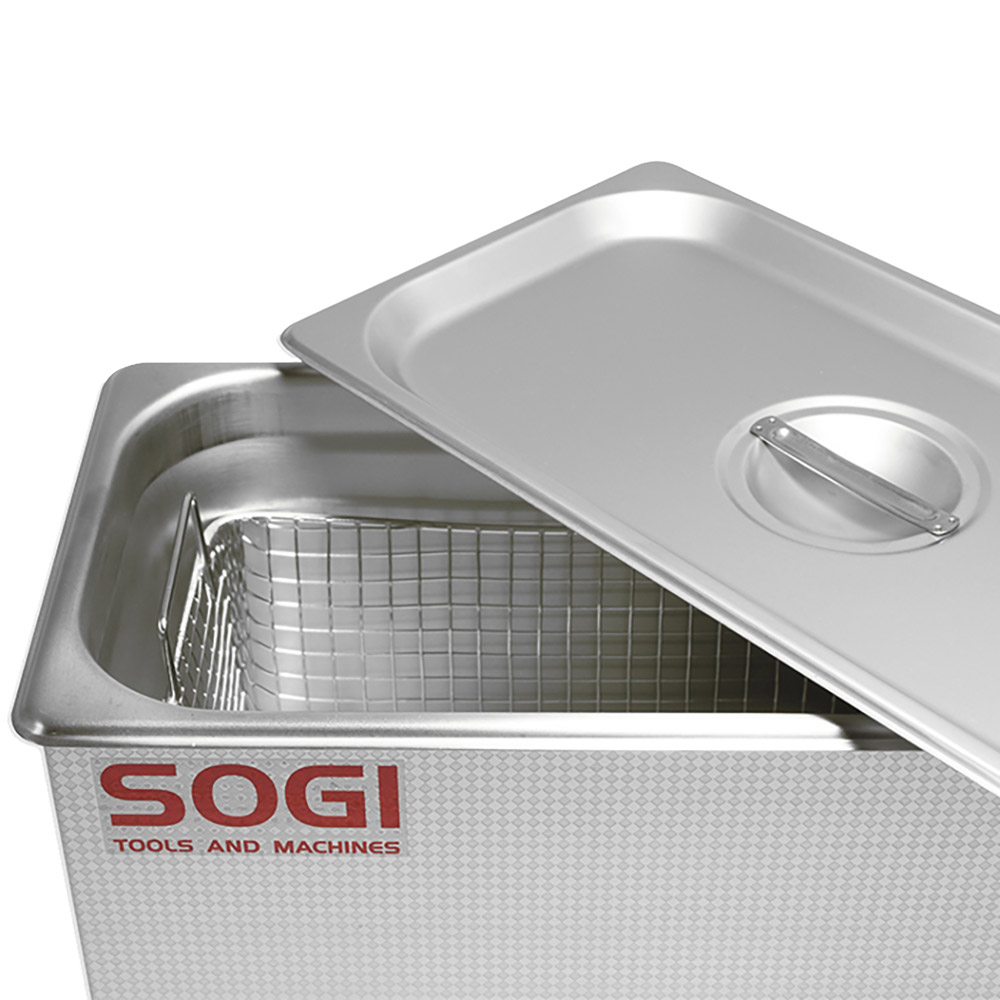 La vasca di lavaggio a ultrasuoni SOGI VL-U650R è realizzata interamente in acciaio inox per contrastare la corrosione dei solventi o liquidi sgrassanti utilizzati durante il lavaggio dei pezzi. É inoltre dotata di riscaldamento con un massimo di 80° Celsius. Predisposta di ventola di raffreddamneto per il sistema di alimentazione.