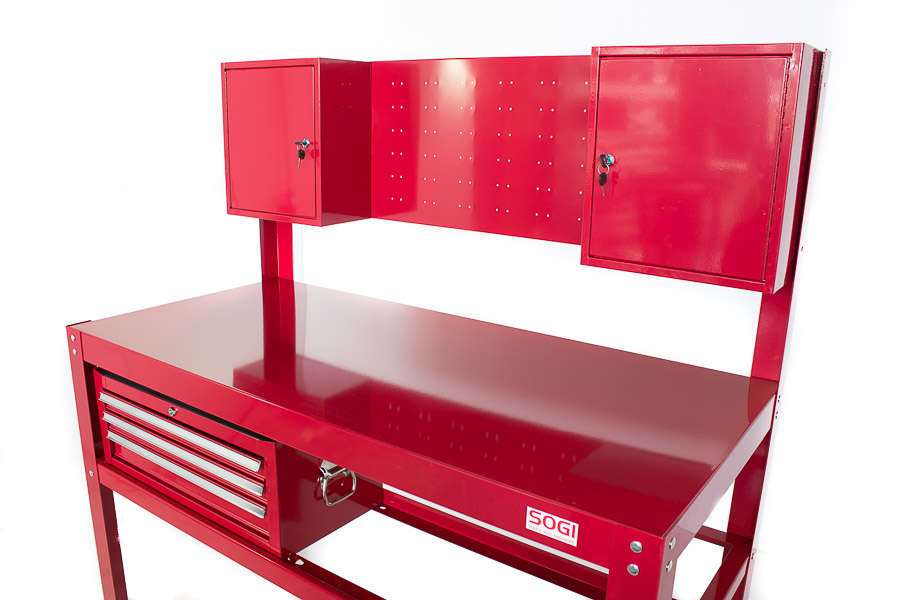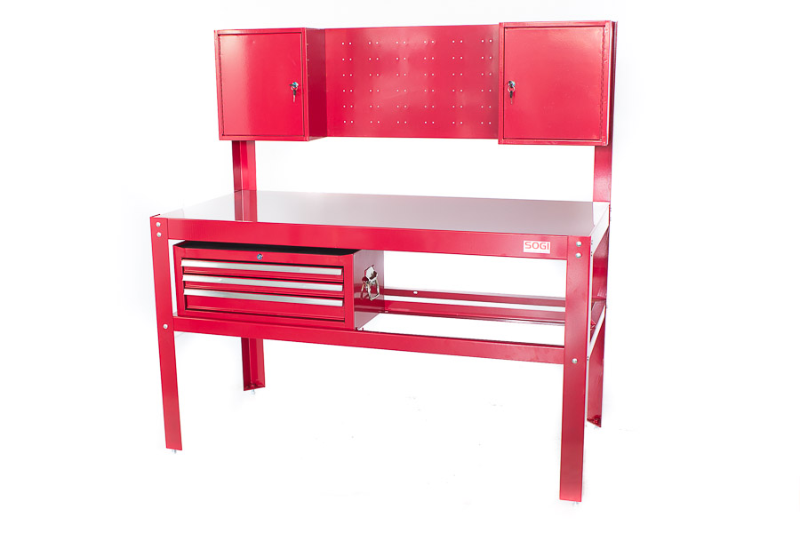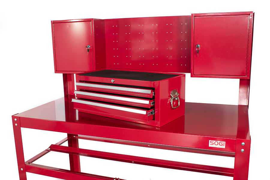 BANCO DA LAVORO 1,5 mt. CON ARMADI E CASSETTIERA VALIGETTA PORTATILE SOGI X3-11