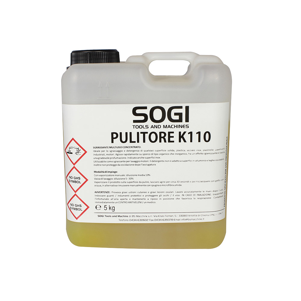 Liquido sgrassante detergente ultraconcentrato K110 per vasca pulitrice SOGI formato 1 L, 5 kg, 10 kg o 25 kg